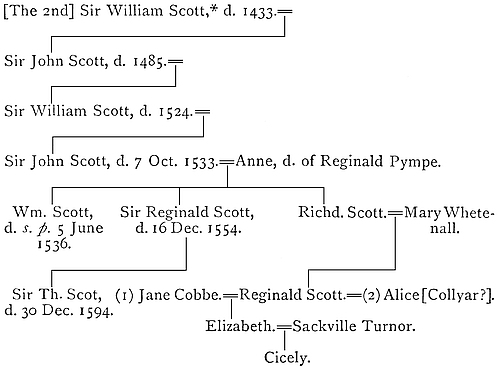 The following table will bring into one view the pedigree of Reginald Scot given in the previous pages: