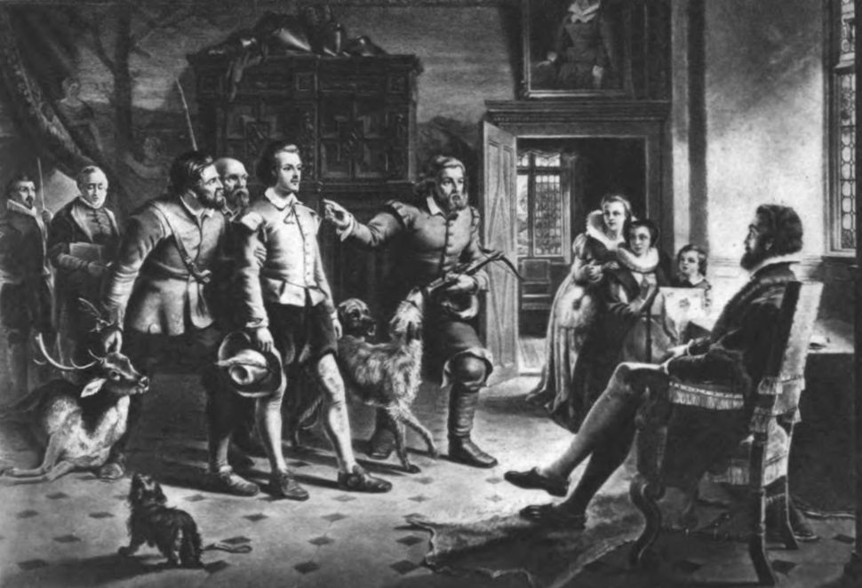 This picture brings vividly before us an interesting incident of Shakespeare's early days. He has just been caught red-handed in the crime of poaching, and is now brought before Sir Thomas Lucy to answer to the gamekeeper's charge. Though this incident seems well authenticated, little is definitely known of this period of the great dramatist's life. But we do know that that energy, which later achieved so much, in his youth ran to waste in all kinds of lawless pleasures. The artist here depicts Sir Thomas Lucy sitting stern and grave as he listens to the constable's charge against Shakespeare. A slaughtered deer has been brought in, as testimony against him. Shakespeare himself, though seeming fully aware of the gravity of his offence, appears nevertheless composed and prepared to answer the charge. Though the magistrate may not be favorably impressed by the dauntless independence of Shakespeare's bearing, we may be sure he excites the admiration of the feminine members of the household, who are watching him with interest. All the accessories of carved woodwork, leaded casements, and tapestried walls interest us as depicting the interior of a typical manor-house of the period.