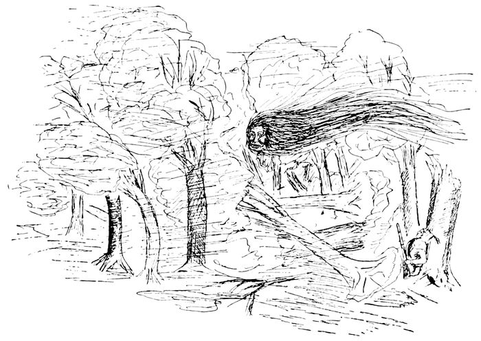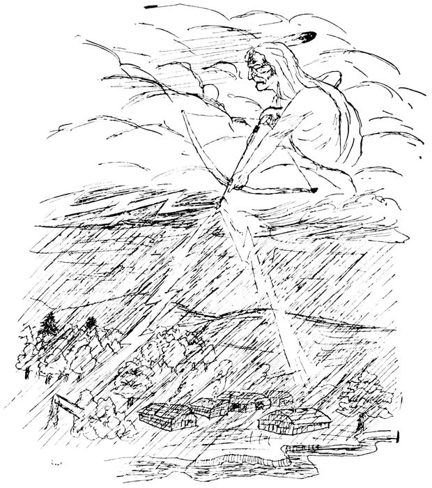 9. In another version this chief was killed and his body hidden in the trunk of the celestial tree. Another chief, a rival, desired to marry the daughter of the deceased one and indeed took her in the manner here related. In this version it was the bride who desired to have the tree uprooted in order that she might hunt for her father’s body. The concealing of the body of the celestial father in the body of a tree reminds one of the legend of Osiris.