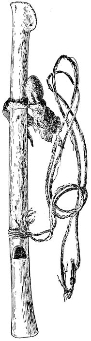 Some one has suggested that Indian songs are not stable 455but vary from time to time, but this idea is at once dispelled when we see a company of fifty young men and old chanting the same song without a discord from night till morning. The song is uniformly the same and probably has varied but slightly since it originated. It is still intact with none of its parts missing, although the words are archaic and some not understood.