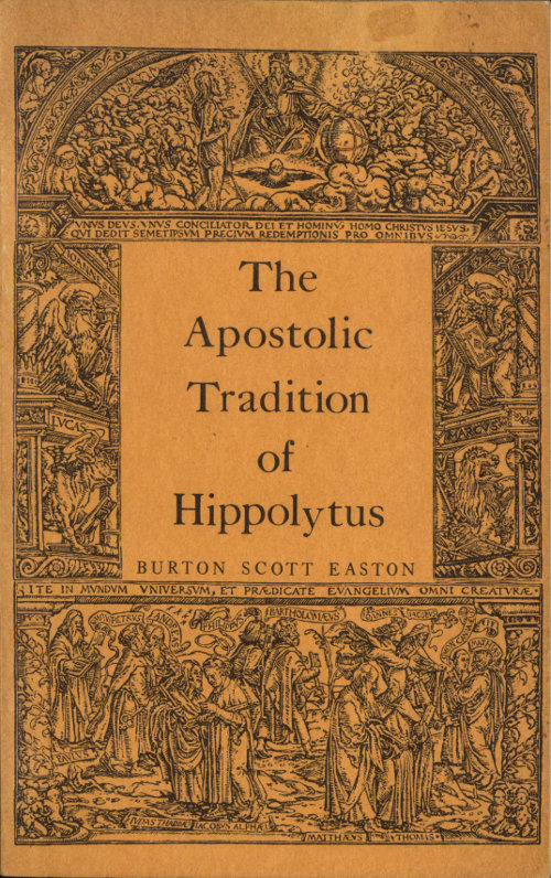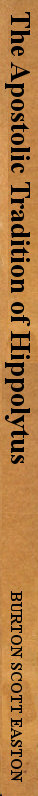 This work of Hippolytus, the subject of the present volume, is named here to preserve the chronological sequence. In its Coptic and other versions it was formerly known as the Egyptian Church Order.
