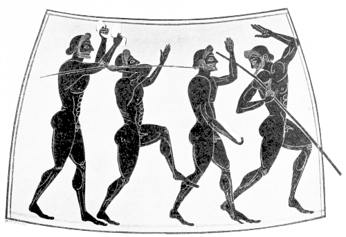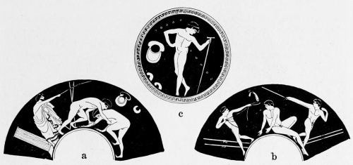 Perhaps my greatest debt has been to the excellent volume entitled Greek Athletic Sports and Festivals, by E. Norman Gardiner, M. A., a scholar whose practical knowledge of modern athletic sports and wide familiarity with the ancient source material, both literary and monumental, has well fitted him to deal afresh with the subject treated so learnedly over three quarters of a century ago in Krause’s Die Gymnastik und Agonistik der Hellenen. I have also constantly drawn upon Gardiner’s collection of vase-paintings which illustrate athletic scenes.