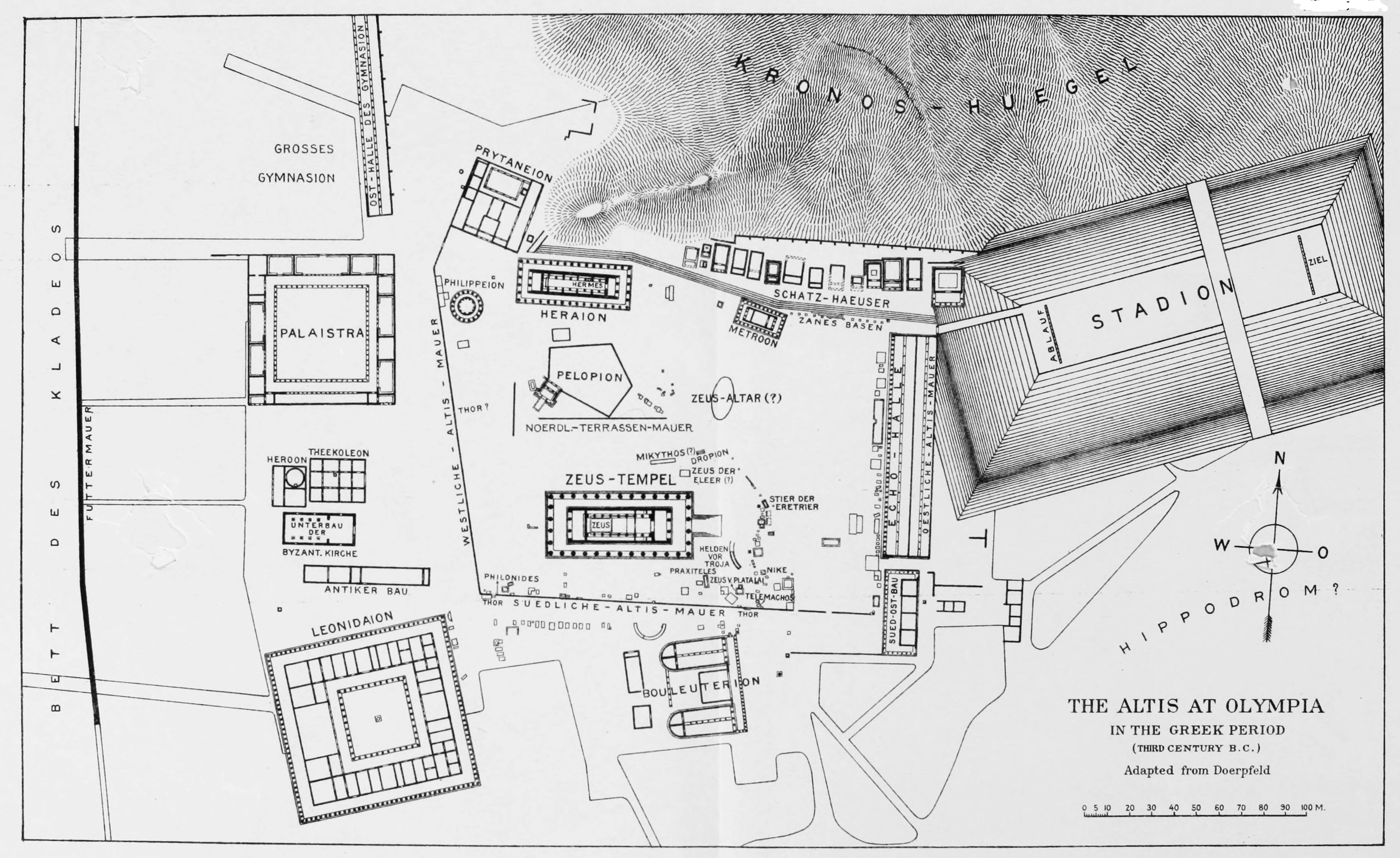 The source-material on which the attempt is based has been indicated fully in the text; it is of two kinds, literary and archæological. To the former belong the explanatory inscriptions on the bases of victor statues found at Olympia and elsewhere, many of which agree verbally with epigrams preserved in the Greek Anthologies; the incidental statements of various kinds and value found in the classical writers and their scholiasts; and, above all, the detailed works of the two imperial writers, the elder Pliny and Pausanias. Pliny’s account of the Greek artists, which is inserted into his Historia Naturalis as a digression (Books XXXIV-XXXVI)—being artificially joined to the history of mineralogy on the pretext of the materials used—is, despite its uncritical and often untrustworthy character, one of our chief mines of information about Greek sculptors and painters. The portions of Pausanias’ Description of Greece which deal with Elis and the monuments of Olympia (Books V-VI), although they also evince little real understanding of art, are of far more direct importance to our subject, since they include a descriptive catalogue, doubtless based upon personal observation, of the greater part of the athlete monuments set up in the Altis at Olympia, the reconstruction of which is the chief purpose of the present work.