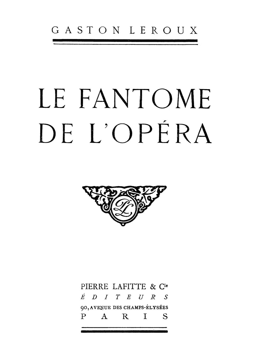 [1]Je serais un ingrat si je ne remerciais également sur le seuil de cette effroyable et véridique histoire, la direction actuelle de l'Opéra, qui s'est prêtée si aimablement à toutes mes investigations, et en particulier M. Messager; aussi le très sympathique administrateur M. Gabion et le très aimable architecte attaché à la bonne conservation du monument, qui n'a point hésité à me prêter les ouvrages de Charles Garnier, bien qu'il fût à peu près sûr que je ne les lui rendrais point. Enfin, il me reste à reconnaître publiquement la générosité de mon ami et ancien collaborateur M. J.-L. Croze, qui m'a permis de puiser dans son admirable bibliothèque théâtrale et de lui emprunter des éditions uniques auxquelles il tenait beaucoup.—G. L.