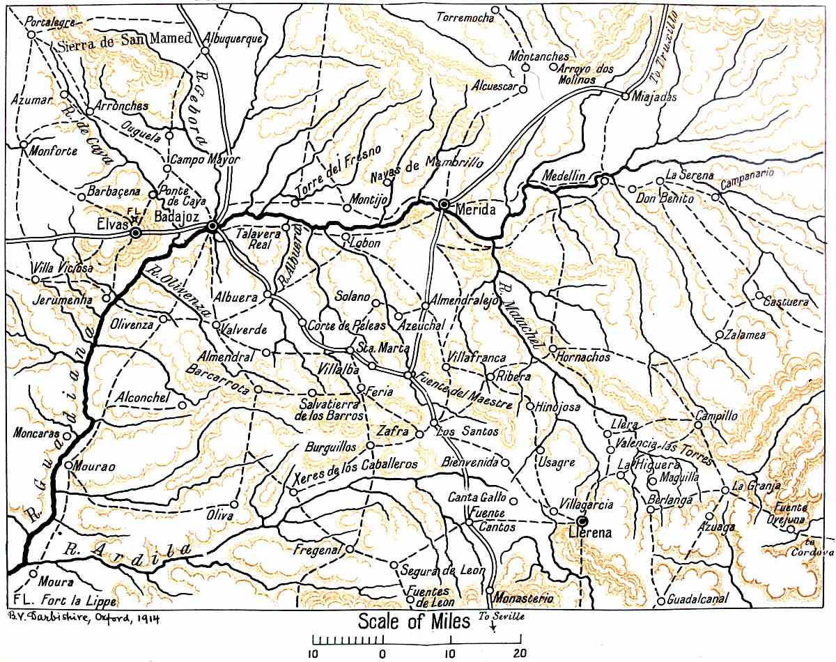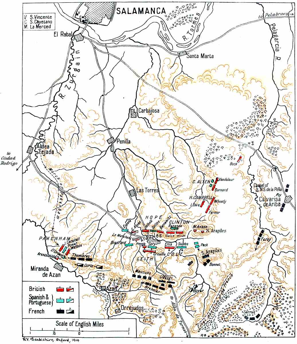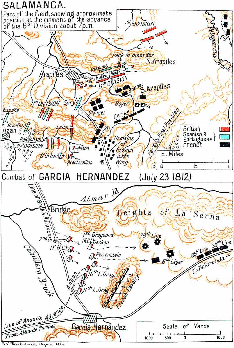 I trust that I may have succeeded in making the topographical details clear at Ciudad Rodrigo, Badajoz, and more especially Salamanca, all of which I have visited. I spent many hours going over the ground at the Arapiles, and found that no mere map could have[p. vii] enabled one to grasp the situation in a satisfactory fashion.