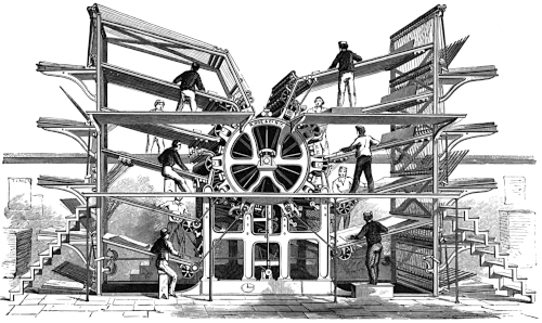 “Truly it is a marvelous machine—this Sextuple press. Nowhere will you find a more perfect adaption of means to ends; nowhere in any branch of industry a piece of mechanism which offers a finer example of what human skill and ingenuity is capable of. And it is free from that reproach which is sometimes brought against the greatest triumph of inventive genius in other departments of human activity—that they make mere automatons out of human beings.
