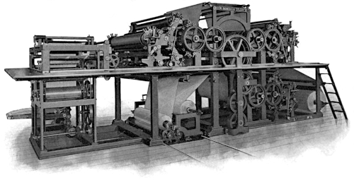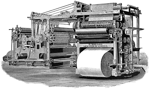 Second. The difficulties in obtaining paper in the roll of uniform perfection and strength. The paper-makers were led to make a study of producing large rolls of paper meeting these requirements, and became much more experienced in its manufacture. The “Walter” press in the “Times” office had necessitated a very strong and expensive paper, which could not be afforded by the cheap daily press.