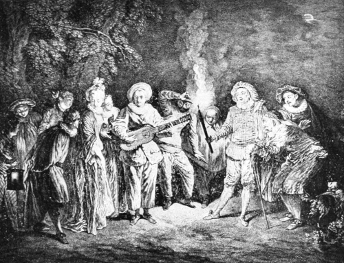 To see the “Fête Galante” was itself a liberal education in the art of stage effect. It was an ideal realisation of the art of Watteau, Lancret, and Fragonard. The very spirit of the period was caught, and it was as if all that one had learnt at secondhand of the people, the dress, the manners, dances, arts and music of the “Grand Century” in France had suddenly awakened into life, and become a living reality of which one was a living part. Yet, paradoxically, it was strangely dream-like still, even as are Watteau’s pictures.
