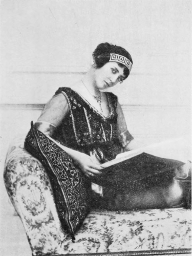 Since then too there was, of course, the appearance of that dainty Dresden-china dancer, Mme. Karina in a graceful little dance-scena, “The Colour of Life,” the expressive music of which was by Miss Dora Bright. Mme. Karina, another dancer who hails from Denmark, won instant appreciation for[316] the beauty of her work, and is indeed notable for her precision, grace and distinction.