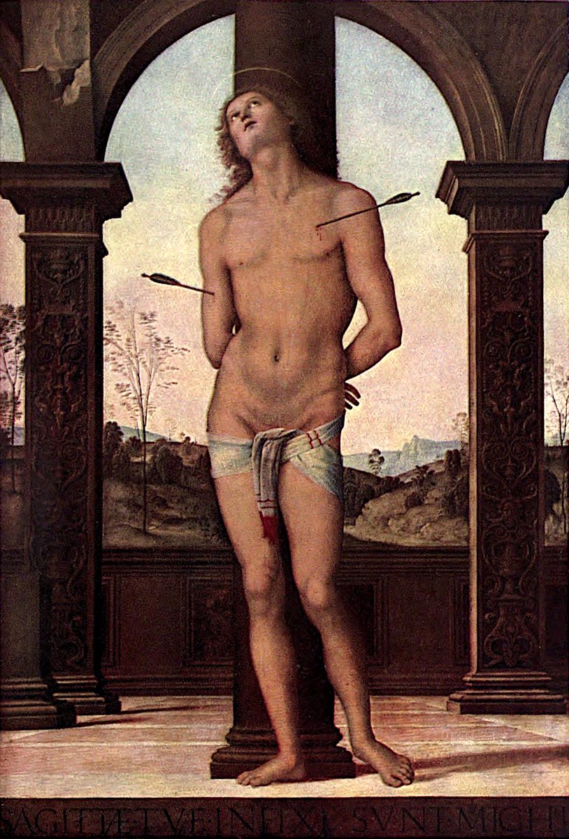 In the descriptions of the pictures the terms right and left are used in reference to the right and left of the spectator, unless the text obviously implies the contrary. Moreover, in the titles of pictures containing the Madonna and several Saints, the names of the Saints are given in the order they occupy in the composition regarded from left to right. The titles we have used are descriptive rather than mere translations of those contained in the official Catalogue. The official numbers are those marked in large figures and placed at the top of the frames; the numbers in small figures affixed to the bottom left corner of some of the frames are obsolete.