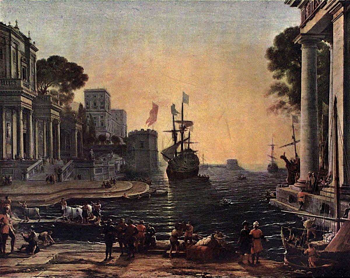 One has to realise that the art of landscape painting had become almost extinct in France, and that the art of seascape had never existed, if one wishes to account for Diderot’s enthusiasm with regard to Claude Joseph Vernet (1714–1789), which made him exclaim, “What pictures! He rivals the Creator in celerity, Nature in truth!” Our cooler judgment cannot so easily pass over all that is cold and formal in his art. But, taken in relation to his contemporaries, he deserves respect for his emotional attitude towards nature, for a sense of the dramatic that approaches Salvator Rosa’s, and for his admirable drawing of the figures introduced into his landscapes. Vernet’s love of the sea awoke when at the age of eighteen he journeyed to Rome, where he became imbued with the classic tradition. He only returned to Paris in 1752, and soon afterwards received from Louis xv. the commission to paint the large series of French Seaports (Nos. 940–954) which are now to be seen in the rooms in this collection given up to the Musée de Marine. In his other marines and landscapes (Nos. 912–939), not all of which are actually exhibited, he allowed his imagination freer play than in the Seaports, which were naturally of more topographic character.