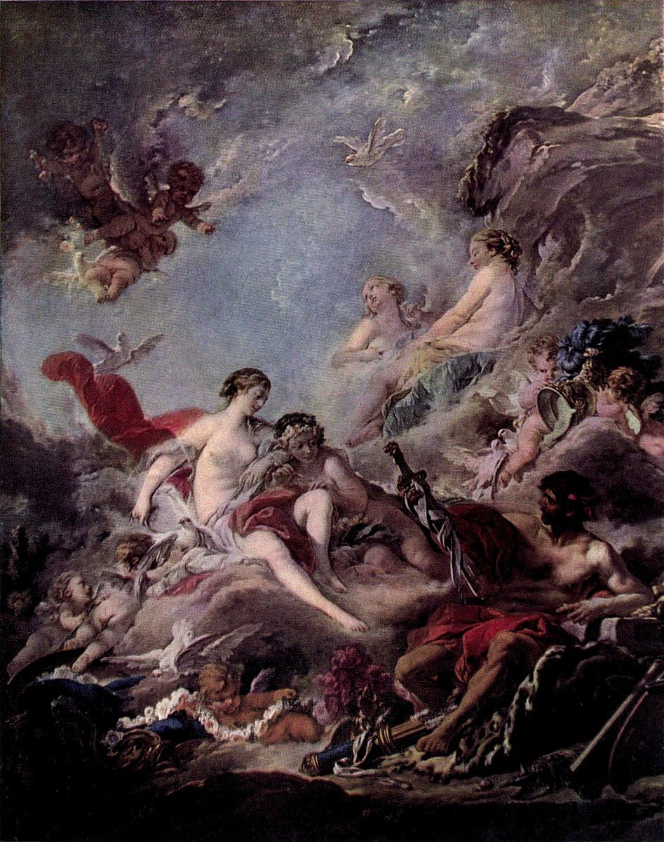 The boudoir art of the ancien régime came to a natural end through the great social upheaval of the Revolution, of which Jacques Louis David (1748–1825) is the very personification in the realm of painting. As a pupil of Boucher, David in his early years was essentially a child of the eighteenth century. That he became the founder and head of a new classicist school, as tyrannical in his sway as had been Le Brun during the reign of Louis xiv., was due to the teaching of Joseph Marie Vien, whom he accompanied to Rome in 1775, the year in which Vien was appointed Director of the École de Rome. Vien was an eclectic and a purist of greater ability than would appear from his two dull pictures at the Louvre, St. Germain and St. Vincent (No. 964) and The Sleeping Hermit (No. 965).