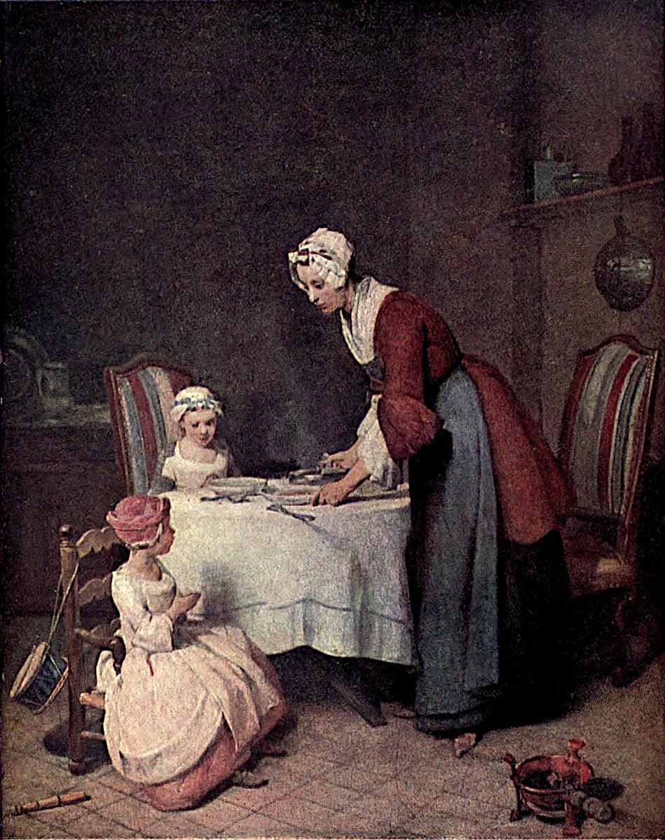 Contemporary with the fighters in the great battle between the Romanticists and the Classicists were a group of able painters who were not connected with either of these main currents of artistic thought, but drew their inspiration from the Dutch genre painters. The Arrival of a Diligence at the Messageries (No. 28), by Louis Leopold Boilly (1761–1845), and The Interior of a Kitchen (No. 261), by Martin Drolling (1752–1817), may be quoted as characteristic instances of these “small masters” without possessing the luminosity of their Dutch exemplars.