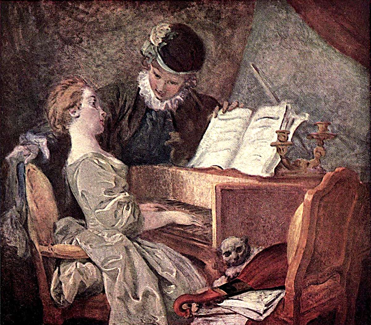Hubert Robert (1733–1808), of whose classic landscapes the collection contains nineteen examples (Nos. 797–815), was not, as274 might be imagined from the general character of his paintings, influenced by the art of Claude Lorrain, but derived his love of antique buildings and landscapes peopled with classic figures from the general atmosphere of archæological enthusiasm engendered by the excavations on the site of Herculaneum, which prevailed in Rome when the young artist arrived at that Mecca of his profession in 1754. Robert lived and worked in Italy for twelve years, and became thoroughly imbued with this antiquarian spirit. Unlike Claude, he rarely, if ever, drew upon his imagination for the details of his classic landscapes, which are faithful transcripts of existing ruined or half-ruined buildings, though not infrequently they are arranged for greater pictorial effect. Of this half-realistic, half-classic nature—the introduction of people in classic garb among the ruins of buildings, which in classic times wore a very different aspect, is a pardonable anachronism—are the Interior of the Temple of Diana at Nimes (No. 799), and several similar pieces at the Louvre. In his smaller pictures, of which the best are the Fountain under a Portico (No. 812) and the Winding Staircase, with three Figures (No. 813), in the La Caze Room, he rivals the rich quality of pigment and mellow tone of Guardi at his best. Robert was Fragonard’s constant companion in Rome, and exercised considerable influence upon his friend, as may be seen from Fragonard’s landscape drawings.