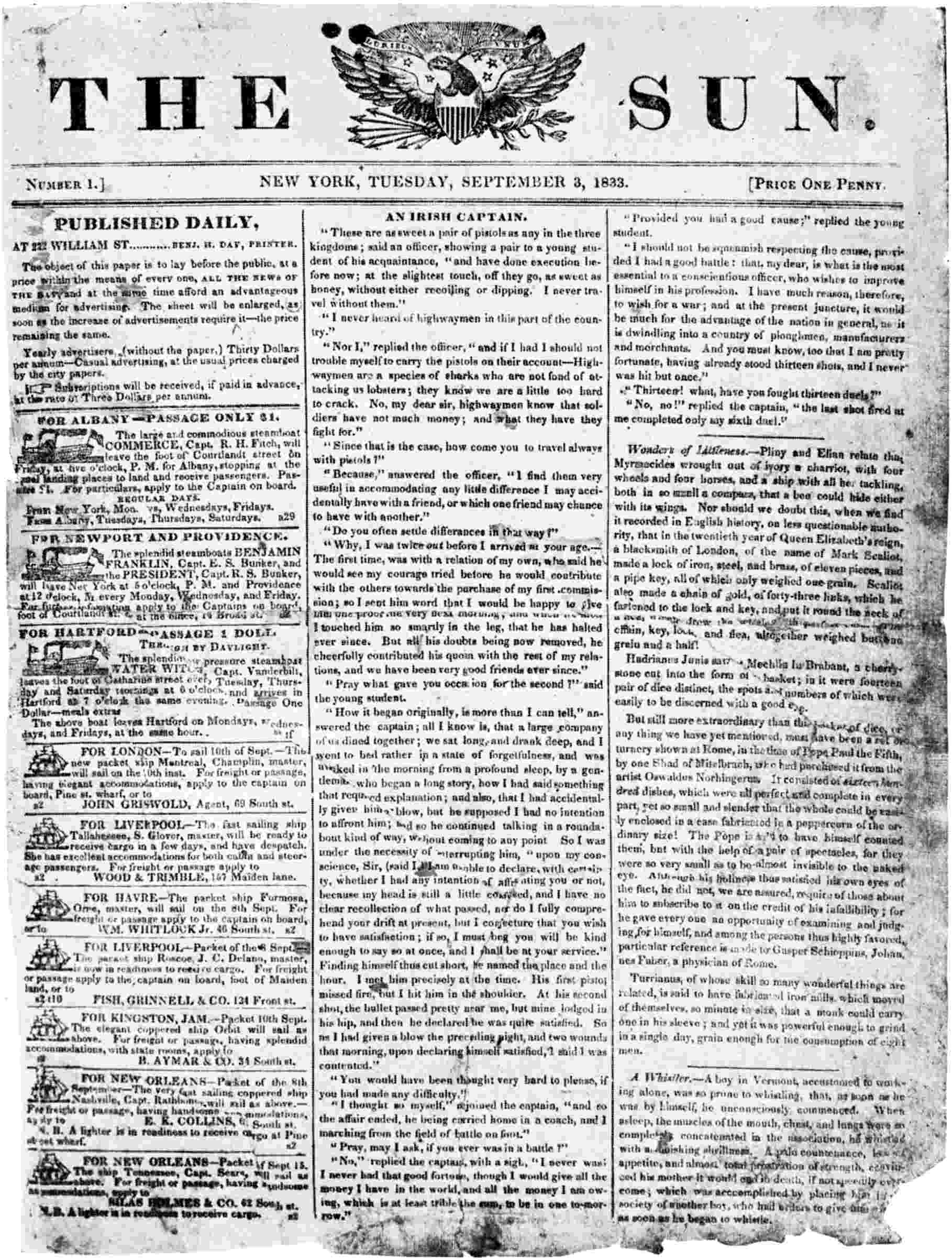 1833.—The Sun is founded by Benjamin H. Day, September 3.