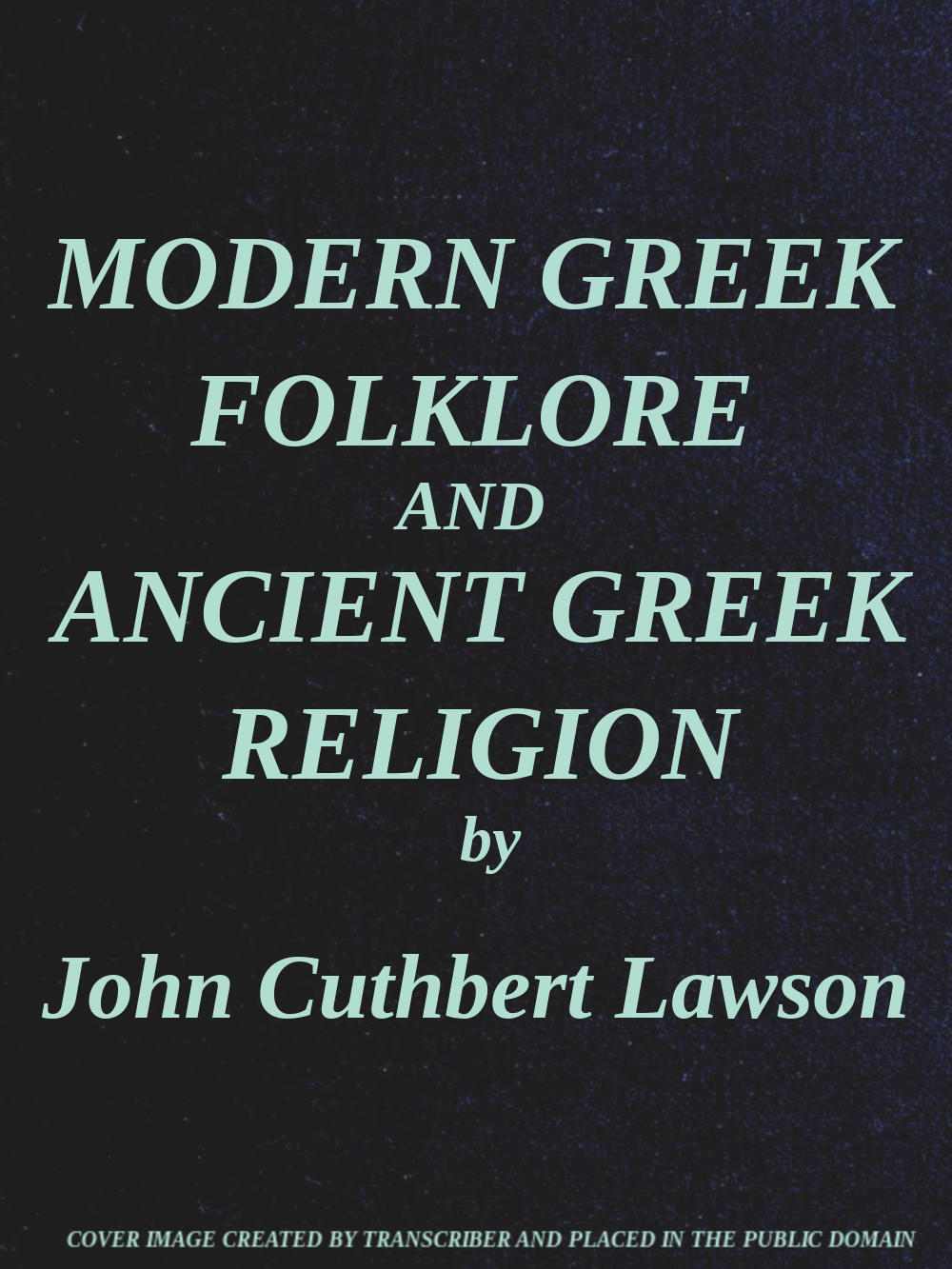 Nearly ten years have passed since my return from Greece, and such leisure as they have allowed has been devoted to co-ordinating the piecemeal information which I personally obtained or have gathered from the writings of others, and to examining its bearing upon the life and thought of Ancient Greece. In the former half of this task I have but followed in the steps of Bernhard Schmidt and of Polites, who had already presented a coherent, if still incomplete, account of the folklore of Modern[x] Greece, and my work has been mainly to check, to correct, and to amplify; but for the latter half I would ask the indulgent consideration which may fairly be extended to a pioneer. Analogies and coincidences in the beliefs and customs of modern and of ancient Greece have indeed been pointed out by others; but no large attempt has previously been made to trace the continuity of the life and thought of the Greek people, and to exhibit modern Greek folklore as an essential factor in the interpretation of ancient Greek religion.