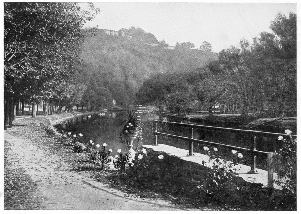 The Woman’s Clubs are seeking to improve conditions, sanitary and scenic; to widen the life of the town and in every way make it more in unison with its natural surroundings. In the limited space of the narrow valley, land is too precious to be used except for buildings, but the hills are so magnificent that they look to them for the necessary beauty; Flagstaff Park has natural effect. The first railroad in Carbon County and one of the oldest in the United States, is the famous Switchback, a gravity road, extending from Mauch Chunk to Summit Hill, opened in 1832, for bringing coal from the mines to the canal; used now only for pleasure; a double track is laid to the summit of Mount Pisgah, 2322 feet distant from the foot, at an angle of twenty degrees, with elevation about 900 feet above the river. Scene from the top is superb, with a succession of mountain ridges rising, range after range, with distant view of Lehigh Water Gap, and farther to Schooley’s Mountain in New Jersey. The principal attraction at Summit Hill is the burning mine, discovered to be on fire in 1859. General Craig of Revolutionary fame resided here.{468}