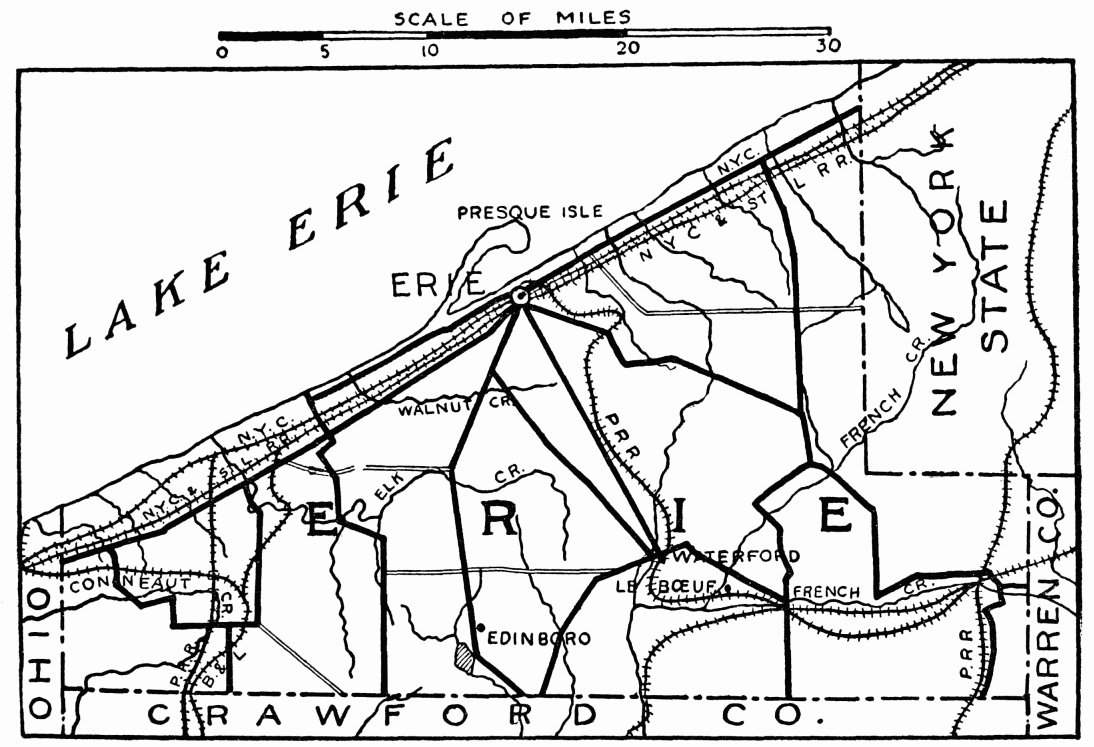 FORMED March 20, 1849; named for Perry’s flagship, in the Battle of Lake Erie, which was named in honor of Captain James Lawrence, United States Navy. Lawrence was mortally wounded in the War of 1812, on the frigate Chesapeake, against the British ship Shannon; as he was carried below he said: “Don’t give up the ship.” Chiefly settled by Scotch-Irish. The old canal to Lake Erie, built in 1833, went through center of the county, and did much to develop the resources—bituminous coal, iron ore, and limestone. Chief industries, manufactories and agriculture. Many beautiful drives are all through the county in every direction.