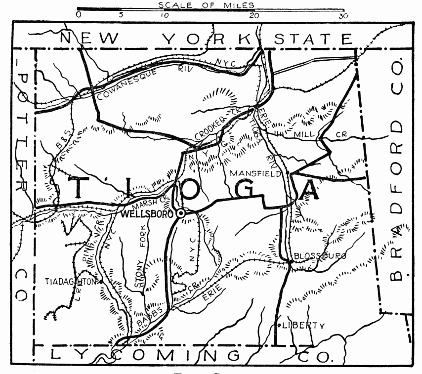 Sinnemahoning (Stony-lick), site of an Indian village called “The Lodge,” the battle ground of Peter Grove, famous Indian fighter, a picturesquely beautiful spot. Here were born the beautiful Clafflin sisters, Lady Cook (Tennesee Clafflin), and Mrs. Martin Woodhull (Victoria Clafflin), now a wealthy philanthropist in England; their father, Buckman Clafflin, a pioneer, opened the first store in the county in 1829.{504}