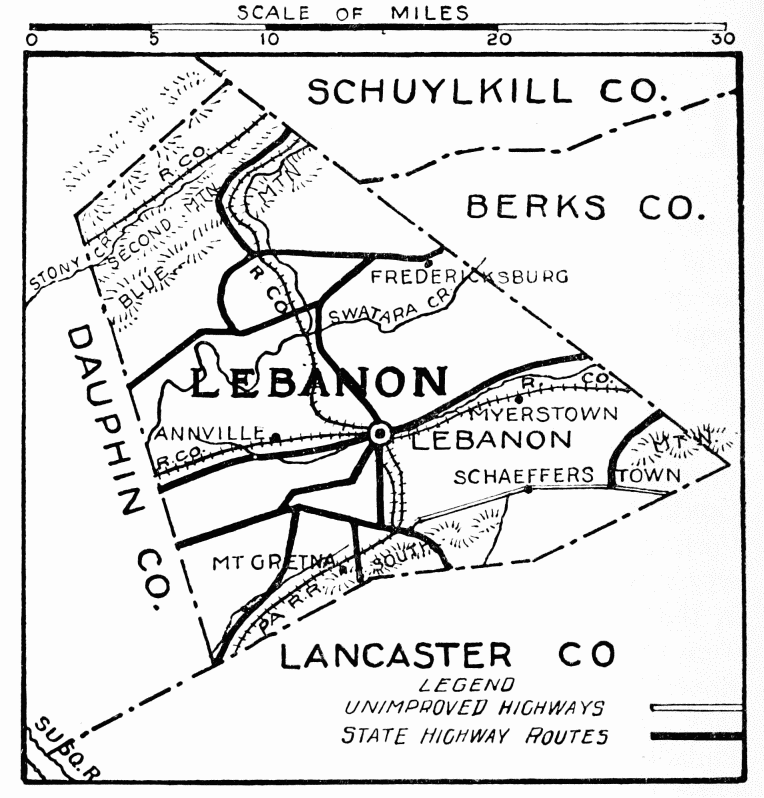 This book, finished for publication in 1917, was placed in the vaults of the Historical Society of Pennsylvania, as all money was needed for our soldiers. The present committee, appointed by Mrs. Hamme, has decided to publish the work as compiled in 1917, and not delay it by trying to bring the sixty-seven counties up to date. Conditions have been so unfavorable for new construction, since the war, that little has been done. The population of towns, however, has been advanced to the 1920 statistics.