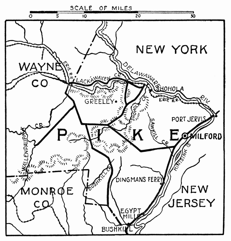 The country northwest has well-cultivated farm lands; that, southeast, blends with the Pocono Highlands, is wild and picturesque; an almost unbroken wilderness for thirty miles, excepting along the line of the Delaware, Lackawanna & Western Railroad; on both sides of this road are good highways; the main road, the whole length of the valley, is exceptionally fine. The road from Gouldsboro Station was built by Jay Gould, 1855, when he was interested with Mr. Pratt in a tannery at Gouldsboro (now Thornhurst).