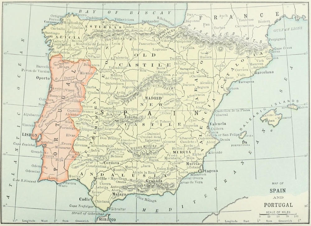 Wallis, S. T., Spain: her institutions, politics and public men, Boston, 1853.—Walton, W., The Revolutions of Spain, 1808-1836, London, 1837, 2 vols.—Watson, R., History of the reign of Philip II, London, 1777, 1839; History of the Reign of Philip III, London, 1783, 1786, 2 vols.—Watts, H. E., The Christian Recovery of Spain, New York, 1894; Spain, from the Moorish Conquest to the Fall of Granada, London and New York, 1897.—Weber, G., Allgemeine Weltgeschichte, Leipsic, 1857-1880, 1882-1890, 15 vols.—Weiss, C., L’Espagne depuis le règne de Philippe II jusqu’ à l’avènement des Bourbons, 1844, 2[658] vols.—Whitehouse, H. R., The Sacrifice of a Throne, Life of Amadeus, Duke of Aosta, sometime King of Spain, New York, 1897.—Wellesley, Richard C., Marquis of, Despatches and correspondence ... during his ... mission to Spain ... in 1809, edited by Montgomery Martin, London, 1838.—Wilkens, Geschichte des spanischen Protestantismus im 16. Jahrhundert, Gütersloh, 1887.—Williams, L., Lendenand, The Land of the Dons, New York, 1898.—Wilson, The Downfall of Spain: Naval History of the Spanish-American War, London, 1899.—Wolf, F., Additions to Julius’ German Translation of Ticknor’s History of Spanish Literature, Leipsic, 1852-1867.—Wright, W., On the Authorities for the History of the Dominion of the Arabs in Spain.—Wulsa, Chronica Regum Gothorum.