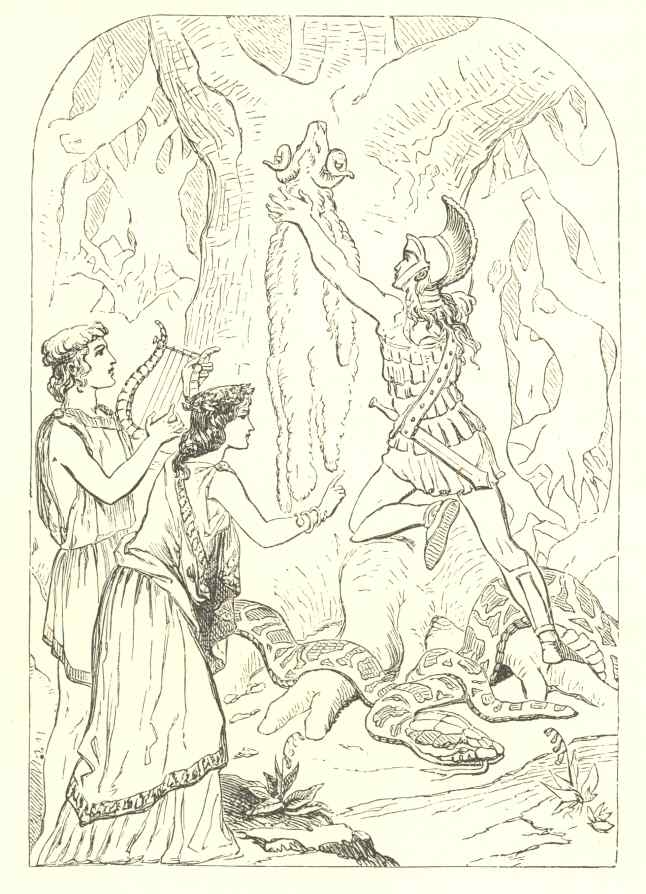 Then Perseus would have spoken, but the strange lady vanished, and he awoke; and behold, it was a dream. But day and night Perseus saw before him the face of that dreadful woman, with the vipers writhing round her head.