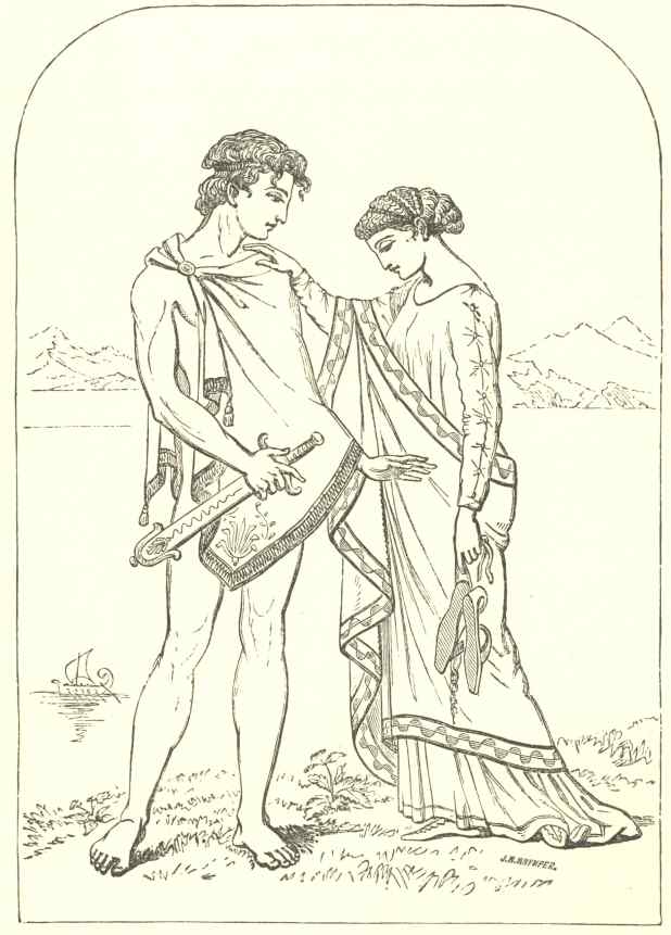 ‘O beautiful damsel, what strange chance has brought you to this island in so flail a ship? Who are you, and whence? Surely you are some king’s daughter; and this boy has somewhat more than mortal.’