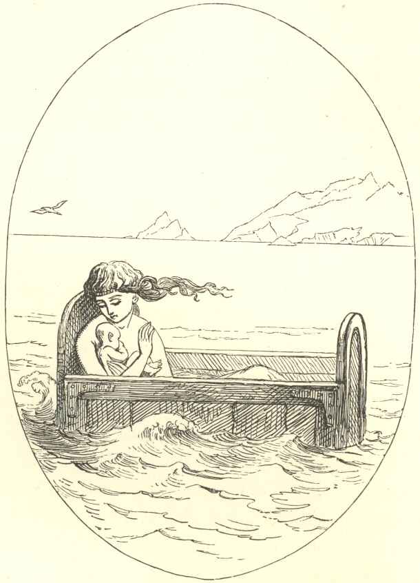 So they floated on and on, and the chest danced up and down upon the billows, and the baby slept upon its mother’s breast: but the poor mother could not sleep, but watched and wept, and she sang to her baby as they floated; and the song which she sang you shall learn yourselves some day.