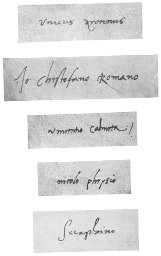 The medallion on the title-page is from a photograph, specially made by Mansell, of a cast, kindly furnished by T. Whitcombe Greene, Esq., of an anonymous medal in his collection at Chandler’s Ford, Hampshire. See the late Alfred Armand’s Les Médailleurs Italiens, ii, 100, no. 10.