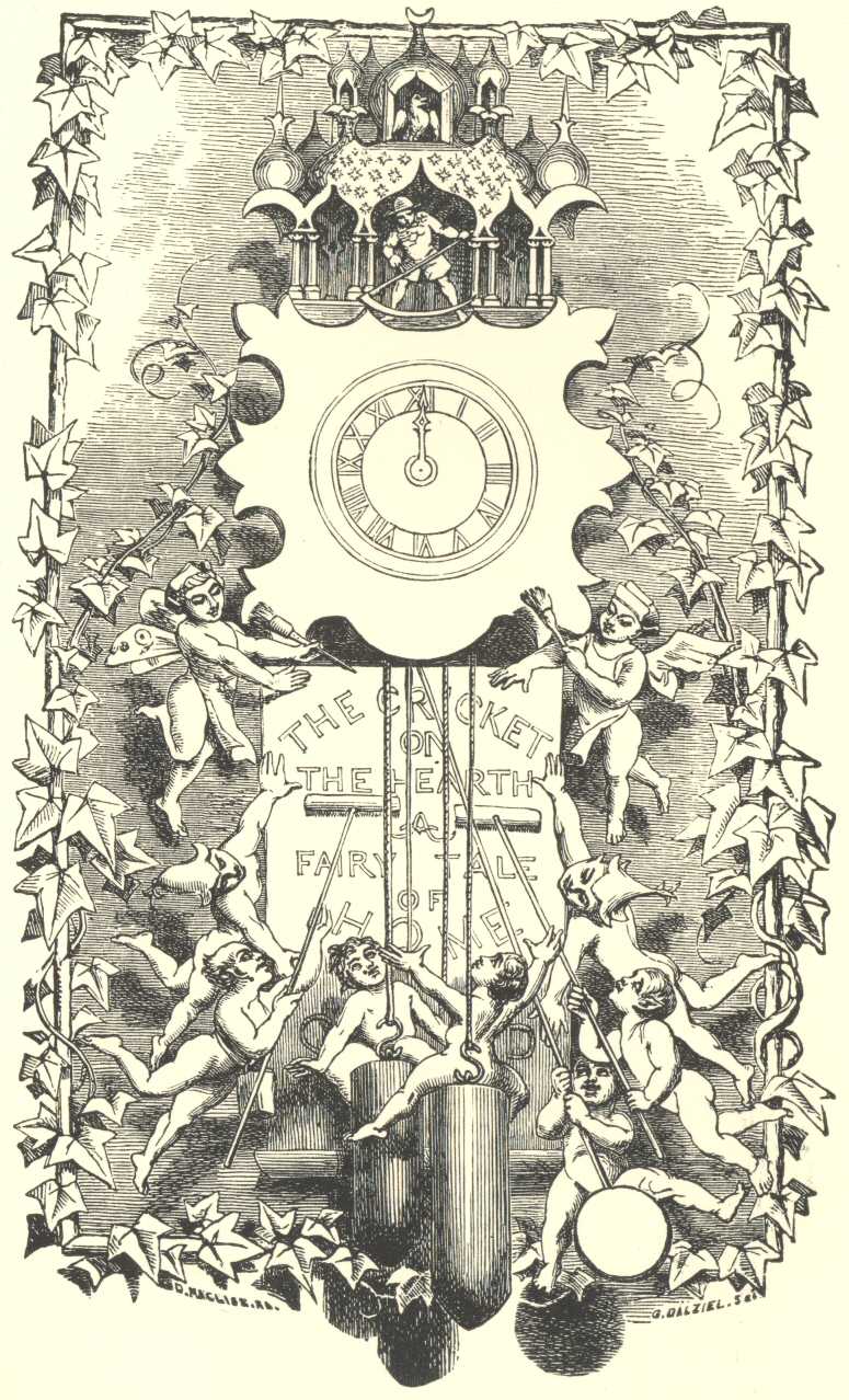 ‘I love it for the many times I have heard it, and the many thoughts its harmless music has given me. Sometimes, in the twilight, when I have felt a little solitary and down-hearted, John—before baby was here to keep me company and make the house gay—when I have thought how lonely you would be if I should die; how lonely I should be if I could know that you had lost me, dear; its Chirp, Chirp, Chirp upon the hearth, has seemed to tell me of another little voice, so sweet, so very dear to me, before whose coming sound my trouble vanished like a dream. And when I used to fear—I did fear once, John, I was very young you know—that ours might prove to be an ill-assorted marriage, I being such a child, and you more like my guardian than my husband; and that you might not, however hard you tried, be able to learn to love me, as you hoped and prayed you might; its Chirp, Chirp, Chirp has cheered me up again, and filled me with new trust and confidence. I was thinking of these things to-night, dear, when I sat expecting you; and I love the Cricket for their sake!’