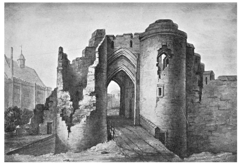 | Old Gateway, Chester Castle (From an old engraving; photograph by F. Simpson) |