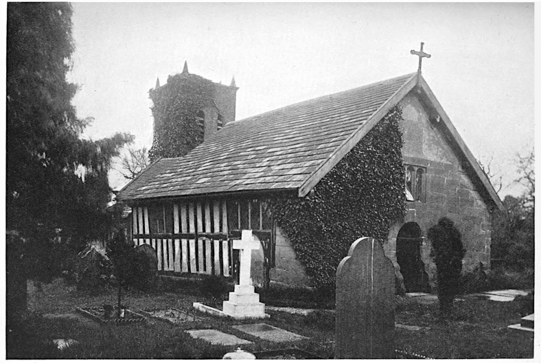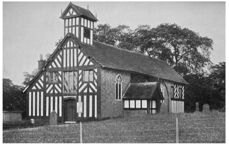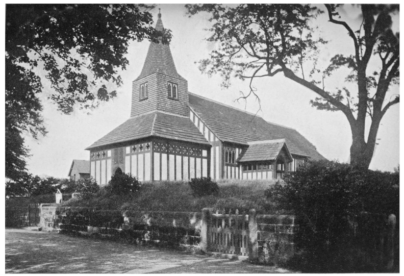 | Old Warburton Church (From a photograph by H. E. Tonge) |