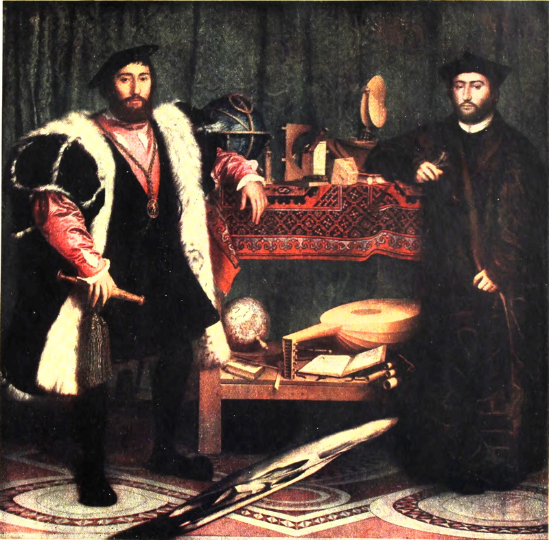 | 9. | THE TWO AMBASSADORS: JEAN DE DINTEVILLE AND GEORGE DESELVE (1533) Reproduced in colour. National Gallery, London. |
