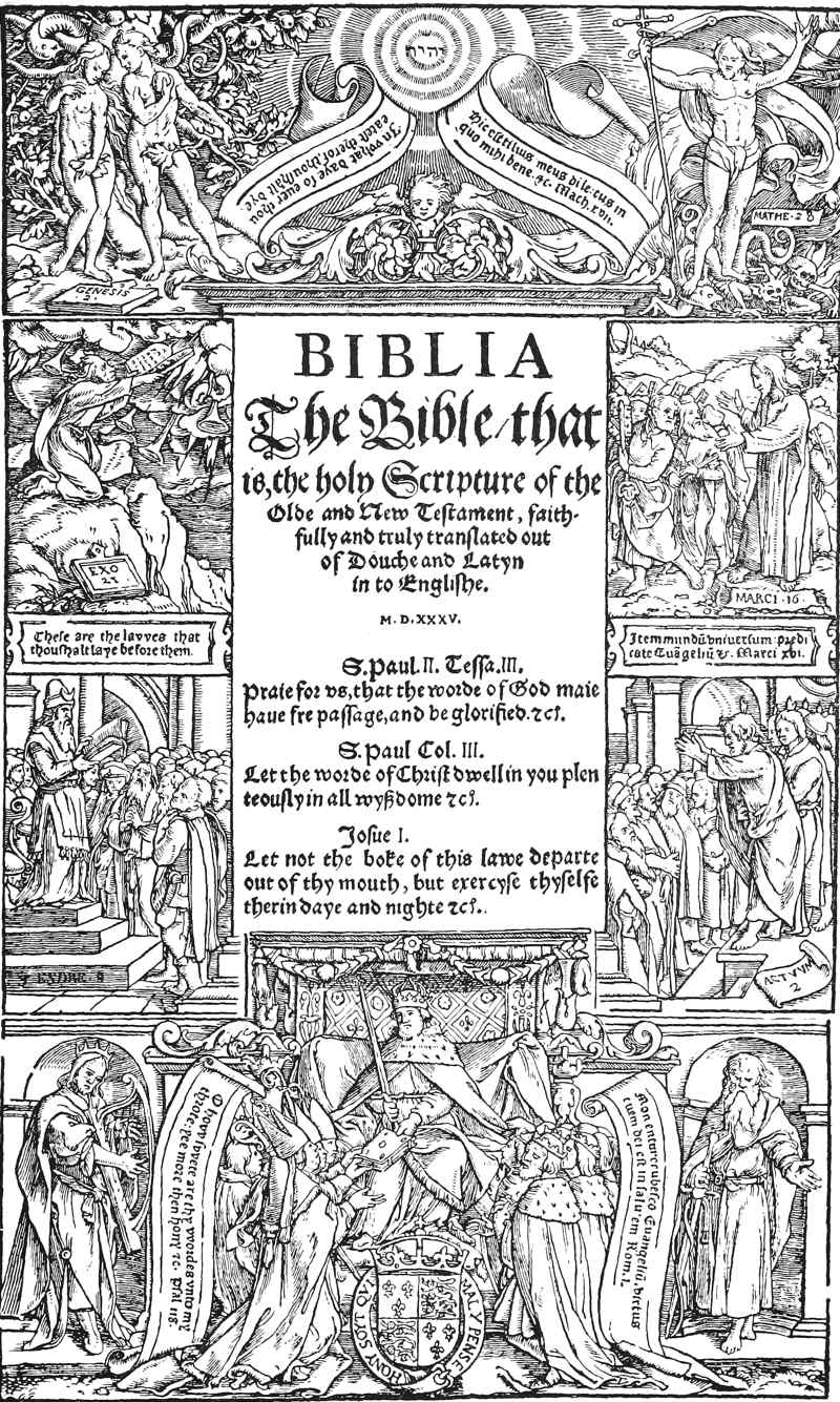 | 13. | TITLE-PAGE OF COVERDALE’S BIBLE (1535) Woodcut. From a copy in the British Museum. |