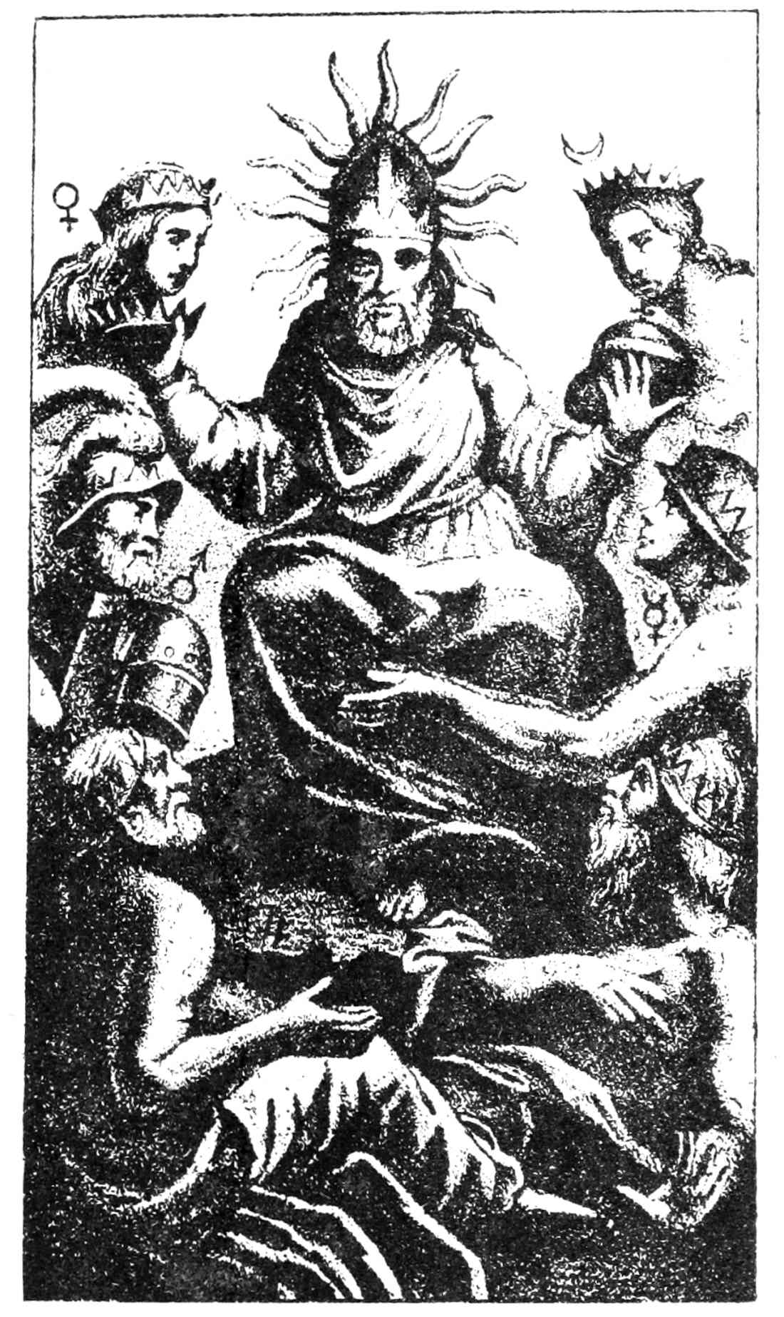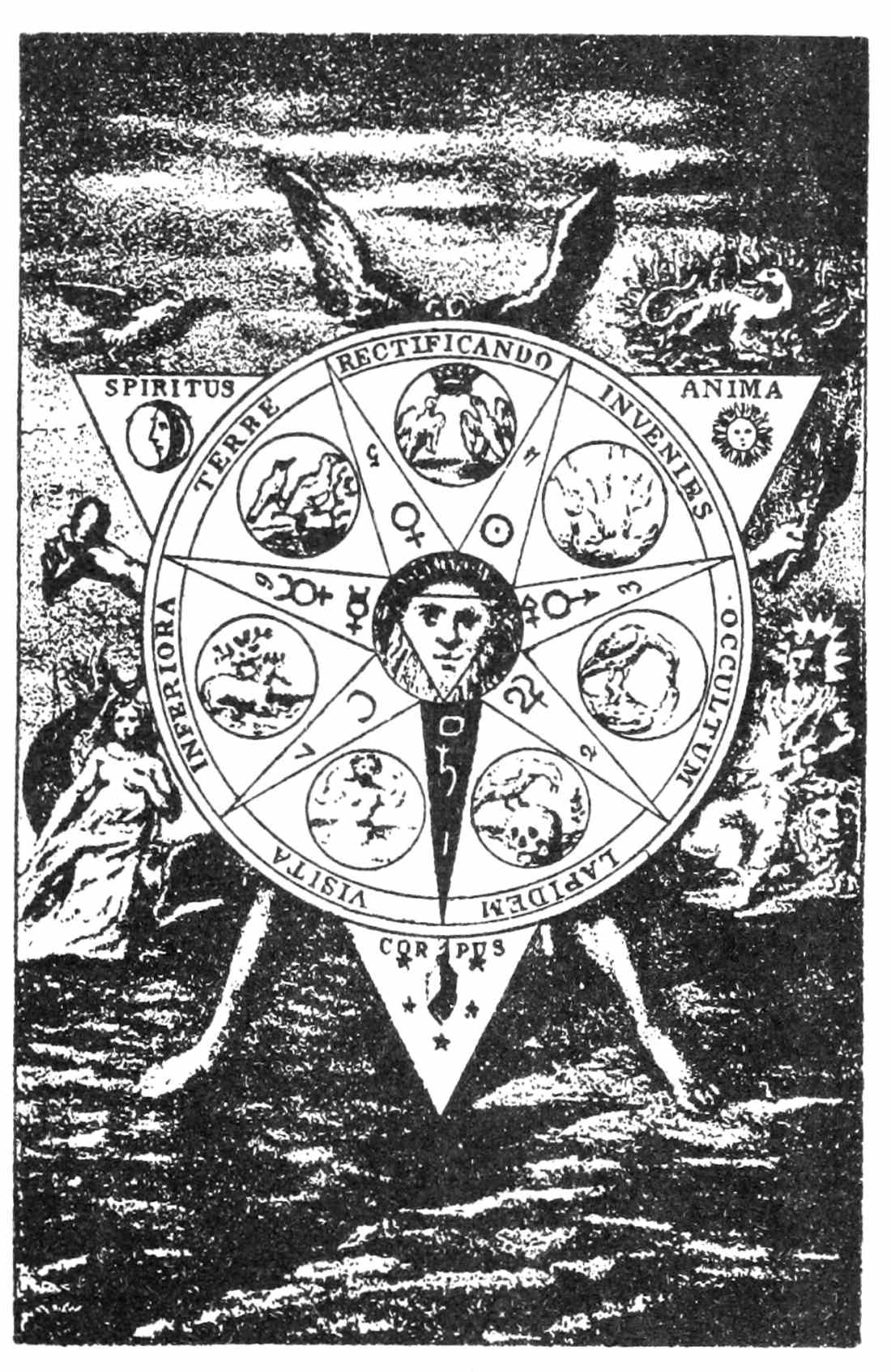 Now, if these things do not differ specifically from the heads of the previous testimony, on the surface and in the letter thereof, it is no less certain that there is a marked distinction alike in general atmosphere and inward spirit. About this all can satisfy themselves who will compare the two texts, and I need not insist on it here. What, however, in the Histoire de la Magie, has befallen that practical side which, after all the dreamings, the high and decorative philosophy, the adornments—now golden, now meretricious—was the evidence, term and crown of the previous work? Those who are[Pg xv] reading can again check me; but my answer is this: whether the subject of the moment is the art of evoking spirits, whether it is old cases of possession, whether it is witchcraft or necromancy, whether it is modern phenomena like direct-writing, table-rapping and the other occurrences of spiritism, as they were known to the writer and his period, they have one and all fallen under the ban of unreserved condemnation. It is not that they are imposture, for Éliphas Lévi does not dispute the facts and derides those who do, but they belong to the abyss of delusion and all who practise them are workers of madness and apostles of evil only. The advent of Christianity has put a decisive period to every activity of Magic and anathema has been pronounced thereon. It is from this point of view that Lévi takes the disciple through each century of the subject, sometimes indeed explaining things from the standpoint of a complete sceptic, sometimes as Joseph Ennemoser might himself have explained them, but never—no, not once—like the authorised exponent of practical Magic who has tried the admirable and terrifying experiments, who returns to say that they are true and real, which is the testimony of the Doctrine and Ritual, if these volumes can be held to signify anything. Necromancy as a science of the abyss; spiritism as the abyss giving up every form of delusion; sorcery, witchcraft, as rich indeed in testimony but to human perversity alone, apart from intervention of diabolism belonging to the other world—I testify with my whole heart to the truth of these accusations, though I do not believe that the unseen world is so utterly cut off from the world of things manifest as Éliphas Lévi considered in his own paradoxical moods. But once more—what has become of[Pg xvi] Magic? What has happened to the one science which is coeval with creation itself, to the key of all miracles and to almost omnipotent adeptship? They are reduced as follows: (a) to that which in its palmary respects is the “sympathetic and miraculous physics” of Mesmer, who is “grand as Prometheus” because of them; (b) to a general theory of hallucination, when hallucination has been carried, by self-induced delusion or otherwise, to its ne plus ultra degree; and (c) but I mention this under very grave reserves, because—for the life of me—I do not understand how or why it should remain—to the physical operations of alchemy, which are still possible and actual under the conditions set forth in the speculation concerning the Astral Light. It is not as such, one would say, a thaumaturgic process, unless indeed the dream should rule—as it tends to do—that fulfilment depends on an electrifying power in the projected will of the adept. In any case, the ethical transliteration of alchemical symbolism is seemingly a more important aspect of this subject.