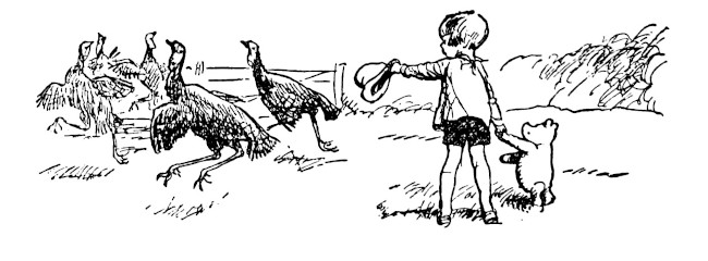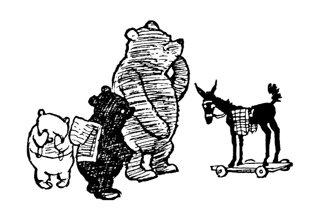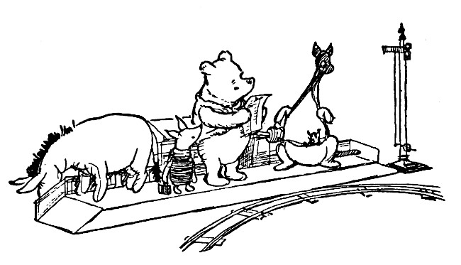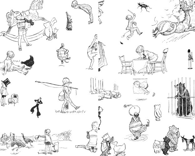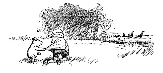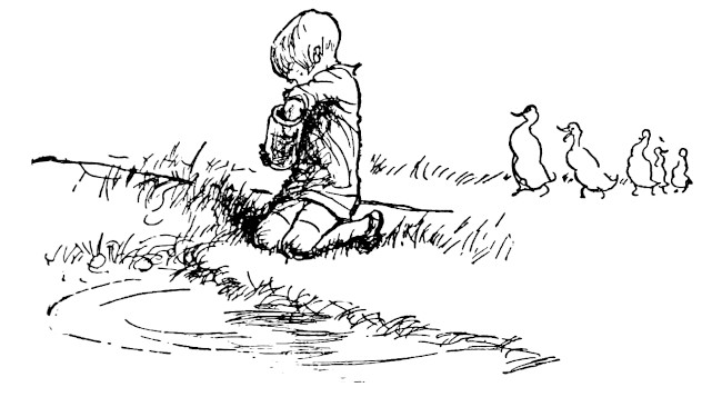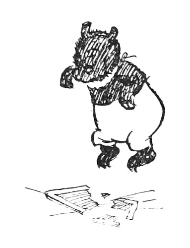 P.S.—Pooh wants us to say that he thought it was a different book; and he hopes you won't mind, but he walked through it one day, looking for his friend Piglet, and sat down on some of the pages by mistake.