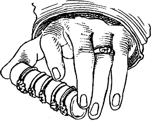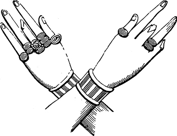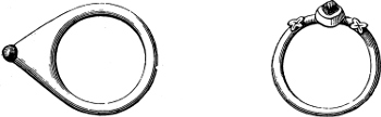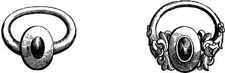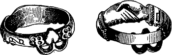 Rings as charms and talismans form a class apart. Often the peculiar form of the circlet was conceived to have a symbolic virtue, but more frequently the talismanic quality depended upon some curious engraved device, upon the stones set in the rings, or upon a mystic or religious inscription. Rings of healing were talismans valued for their special power to cure disease; the “cramp rings,” dated in legend back to the time of Edward the Confessor, were notable in this series.