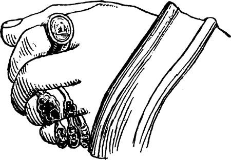 A most important class are the rings bestowed upon and worn by the higher ecclesiastics. Papal rings, among which the most noted is the “Fisherman’s Ring,” rings for cardinals and for bishops, and also occasionally in former times, for abbots, were and are still regarded with special reverence in the Roman and Greek churches. The usage of wearing rings of this type dates far back in the history of Christianity. Many examples of these[viii] rings are given, as also of others bearing Christian emblems, and of those worn by nuns, and by widows who had vowed never to re-wed.