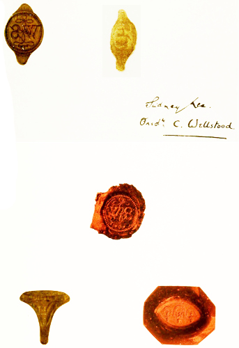 The rings of famous men and women will always be prized as mementos, and in the various chapters of this book a large number of them will be found, both rings of the mighty dead and those of distinguished living persons; among these latter we are happy to be able to produce an illustration of the inscription of President Wilson’s ring from an impression of his seal courteously made by his own hand. It shows his name engraved in Pitmanic shorthand.