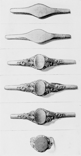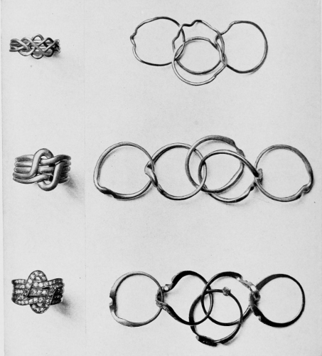 How rings are made by our jewellers of to-day, more especially by the accurate and varied mechanical methods now employed for their production, is concisely treated in a supplementary chapter. While machine-made rings can scarcely be expected to equal those executed by the hand of the true artist-goldsmith, those now produced are nevertheless objects of beauty and adornment.