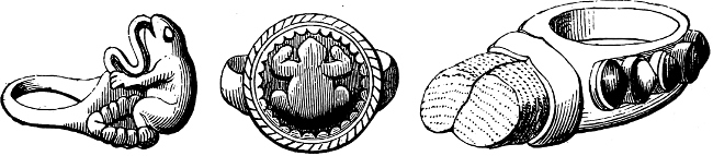 [520] O. M. Dalton, “Franks Bequest, Catalogue of the Finger Rings, Early Christian, Byzantine, Teutonic, Mediæval and Later [British Museum],” London, 1912, p. 138, Nos. 877, 878, 879; see Plate XV.