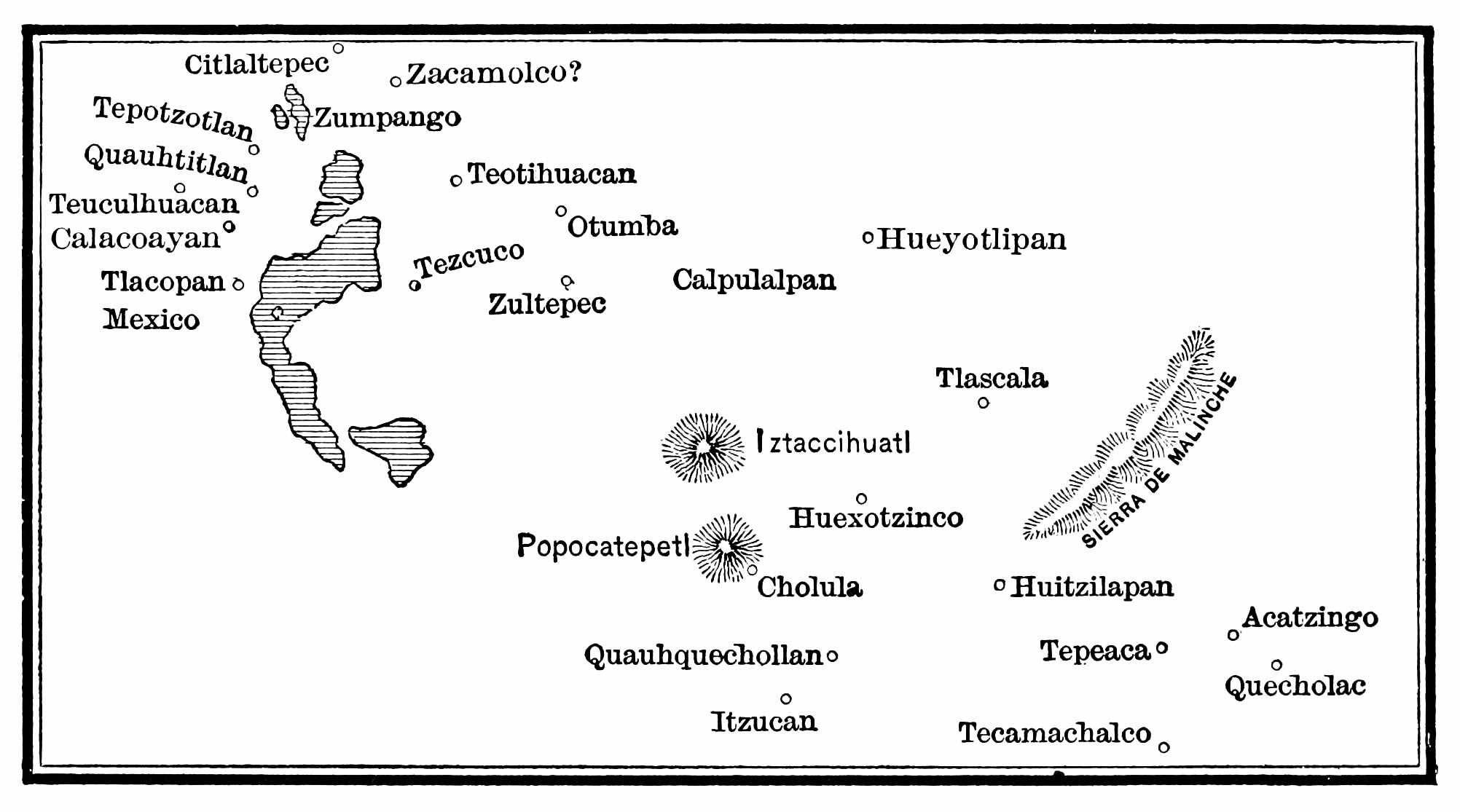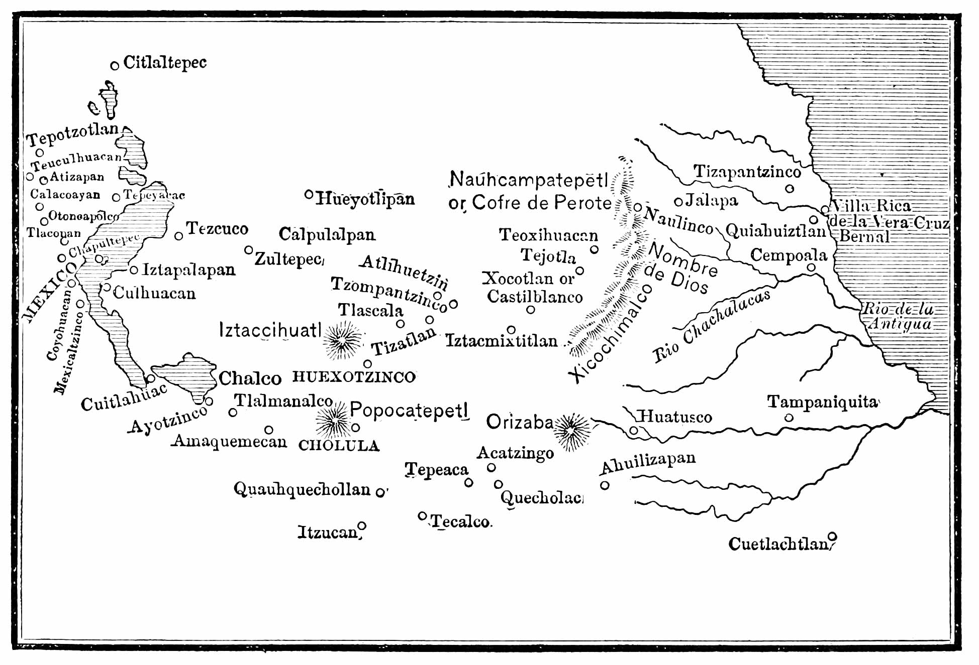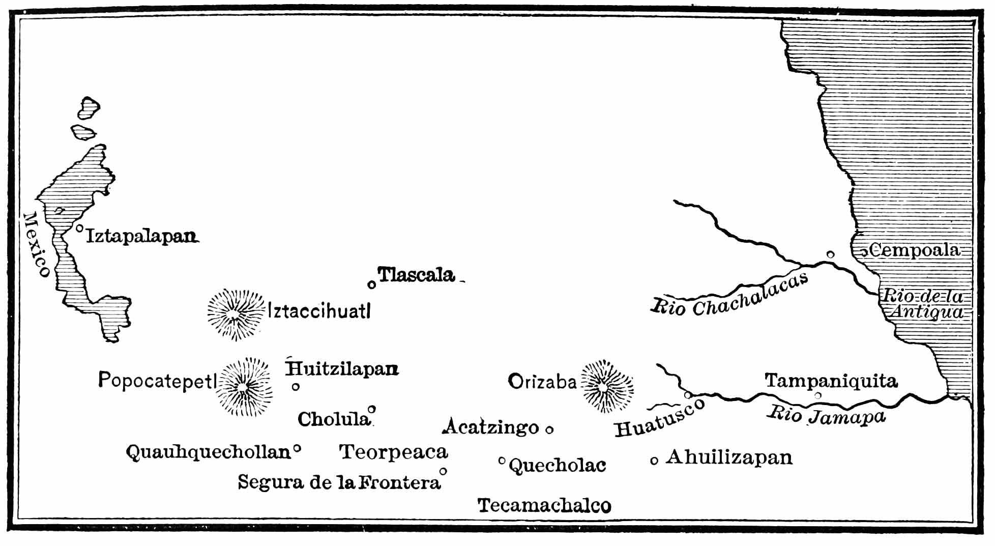 | Montezuma Consults the Gods—He again Begs the Strangers not to Come to him—Popocatepetl and Iztaccihuatl—News from Villa Rica—Death of Escalante—Return of the Cempoalan Allies—Again en route for Mexico—Reception at Huexotzinco—First View of the Mexican Valley—Exultations and Misgivings—Resting at Quauhtechcatl—The Counterfeit Montezuma—Munificent Presents—The Emperor Attempts to Annihilate the Army by Means of Sorcerers—Through Quauhtechcatl, Amaquemecan, and Tlalmanalco—A Brilliant Procession Heralds the Coming of Cacama, King of Tezcuco—At Cuitlahuac—Met by Ixtlilxochitl—The Hospitality of Iztapalapan | 252 |