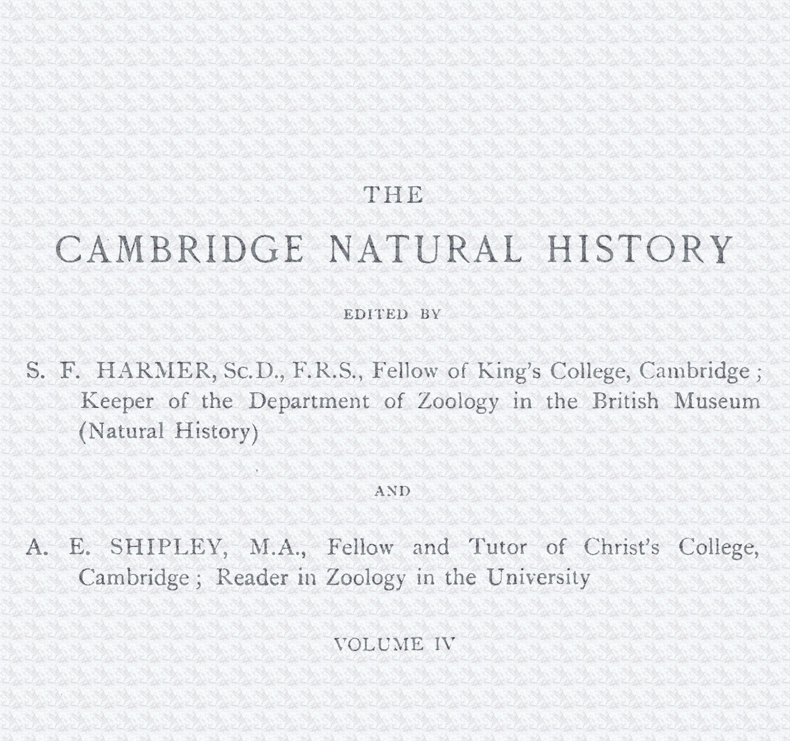 S. F. HARMER, Sc.D., F.R.S., Fellow of King’s College, Cambridge; Keeper of the Department of Zoology in the British Museum (Natural History)