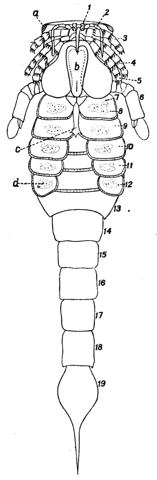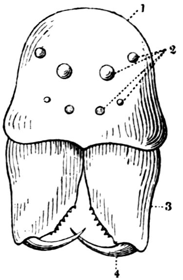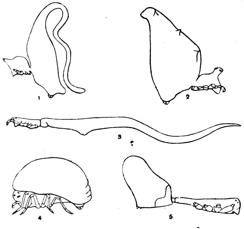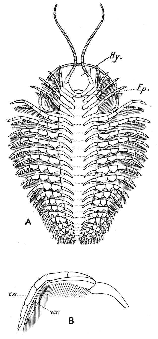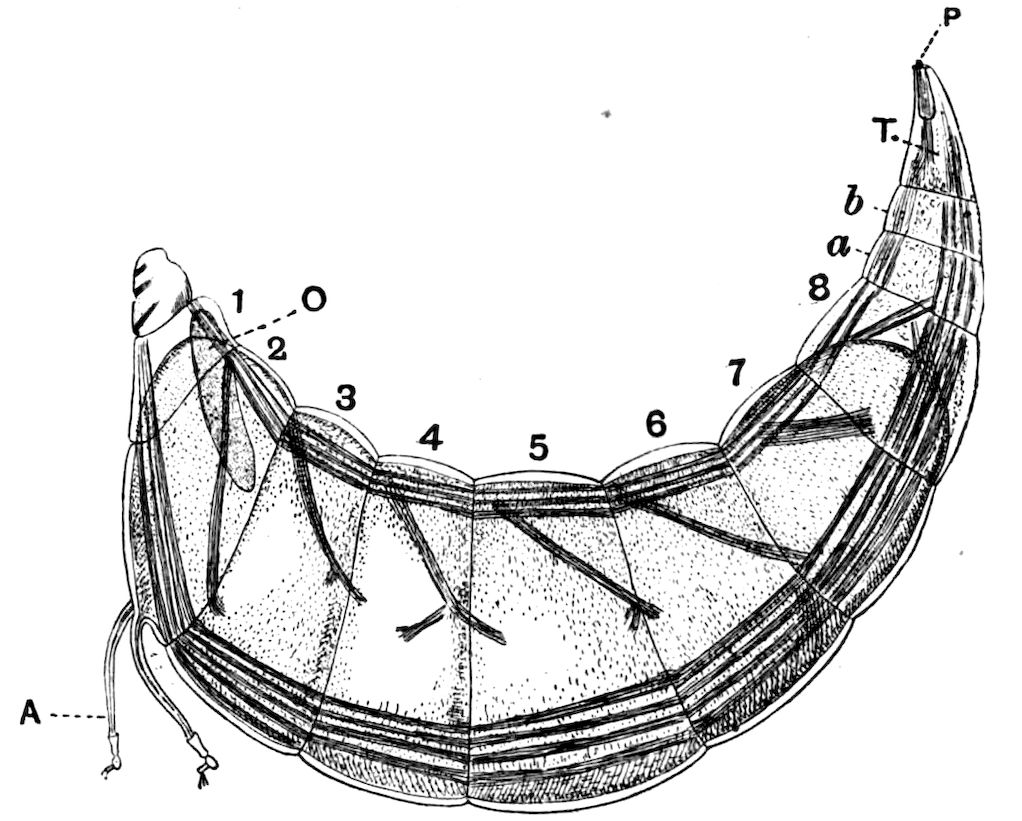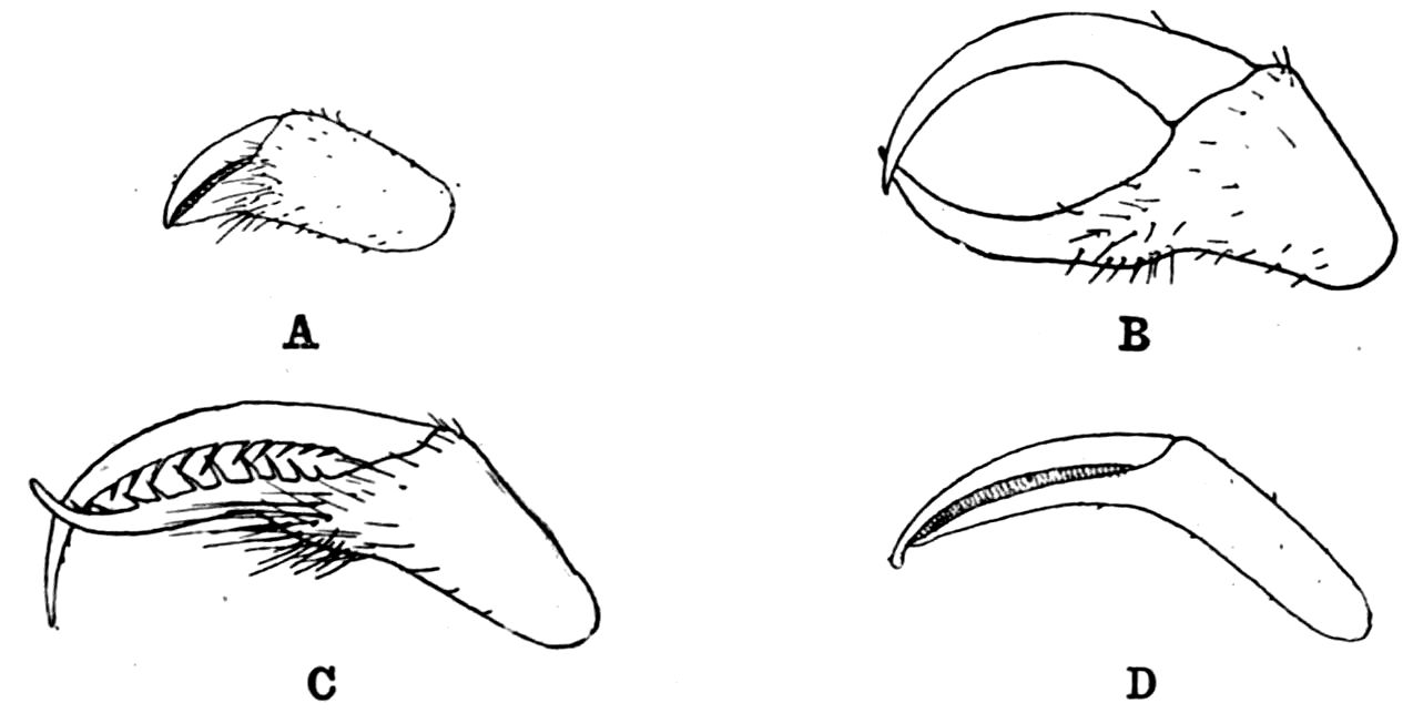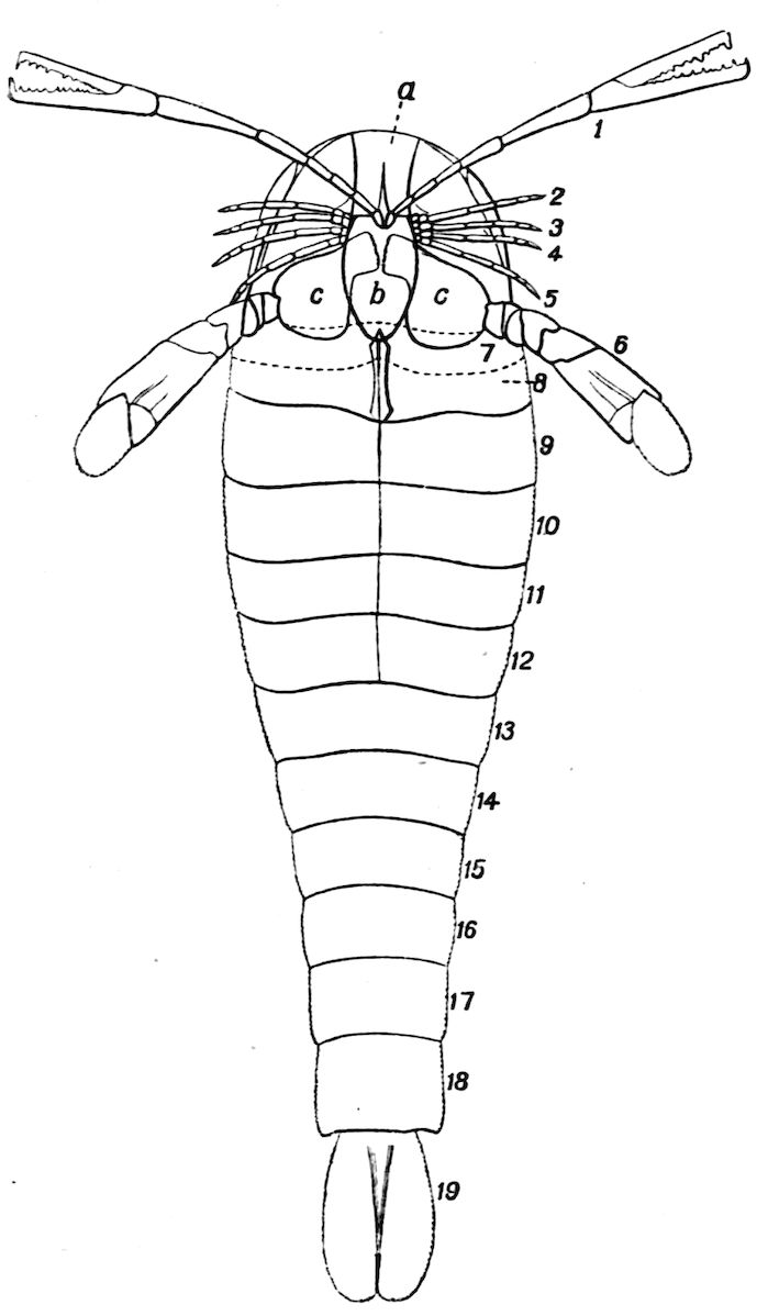 426. The chelate form of the foremost appendages is of little moment. A chela consists merely of a more or less mobile terminal joint flexing on a more or less protuberant penultimate one, and in the Scorpions, in Limulus, throughout the Crustacea, and even in Insects (cf. vol. vi. p. 554), we see such a structure arising independently on very diverse appendages.