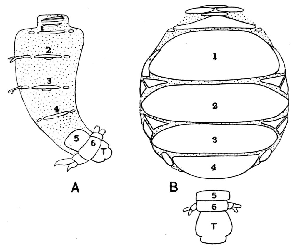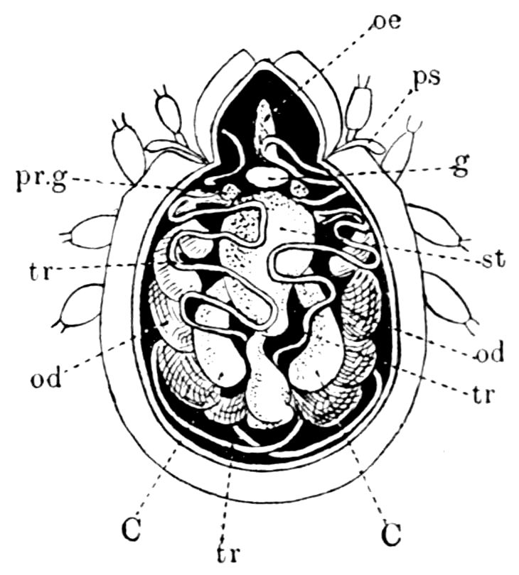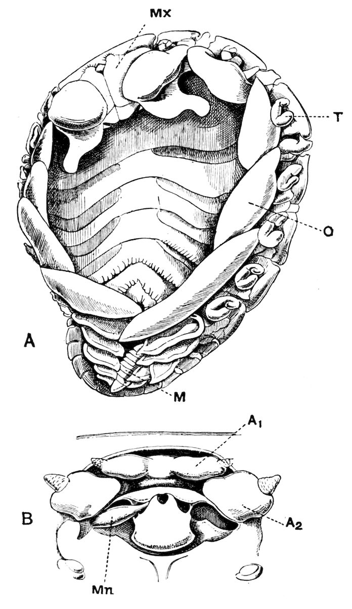 Crustacea, by Geoffrey W. Smith, M.A., and the late W. F. R. Weldon, M.A.; Trilobites, by Henry Woods, M.A.; Introduction to Arachnida, and King-Crabs, by A. E. Shipley, M.A., F.R.S.; Eurypterida, by Henry Woods, M.A.; Scorpions, Spiders, Mites, Ticks, etc., by Cecil Warburton, M.A.; Tardigrada (Water-Bears), by A. E. Shipley, M.A., F.R.S.; Pentastomida, by A. E. Shipley, M.A., F.R.S.; Pycnogonida, by D’Arcy W. Thompson, C.B., M.A.