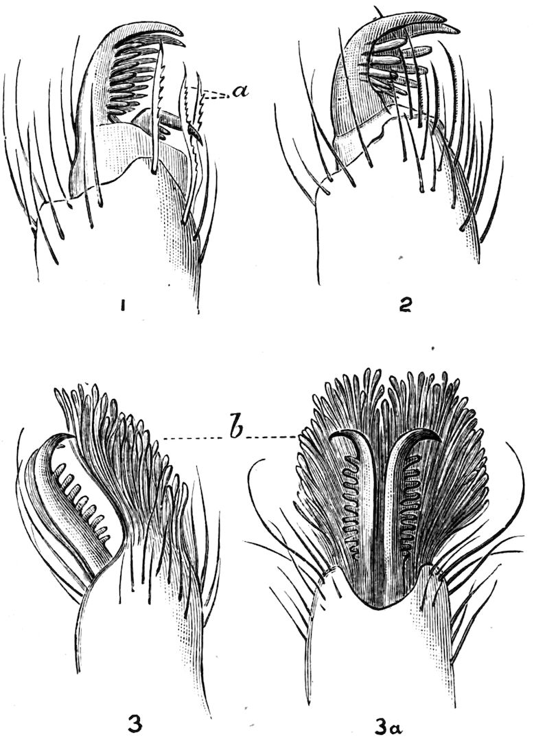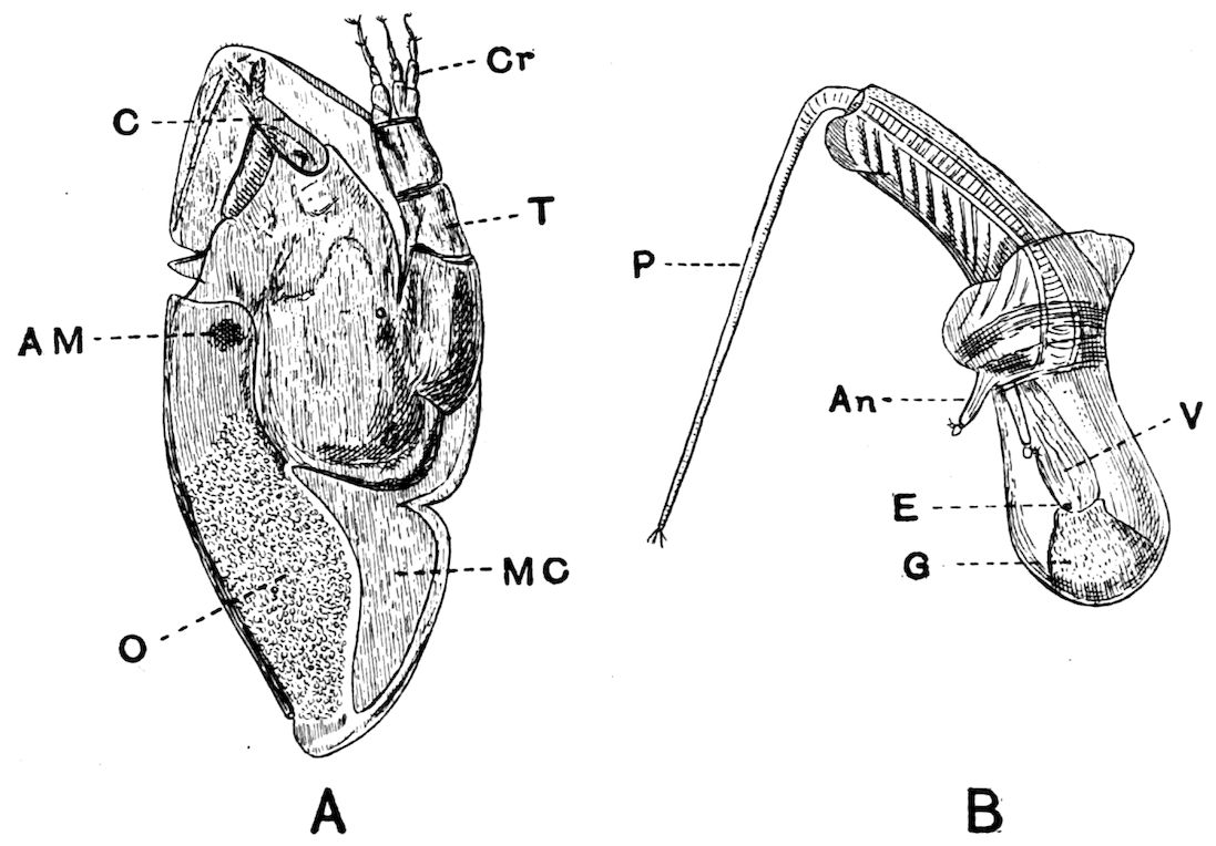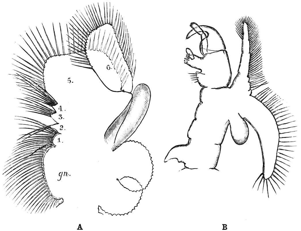 420. Fabricius says of his Pycnogonum (Nymphon) grossipes, “Vescitur insectis et vermibus marinis minutis; quod autem testas mytilorum exhauriat mihi ignotum est, dum nunquam intra testam mytili illud inveni, licet sit verisimile satis,” Fauna Groenlandica, p. 231.