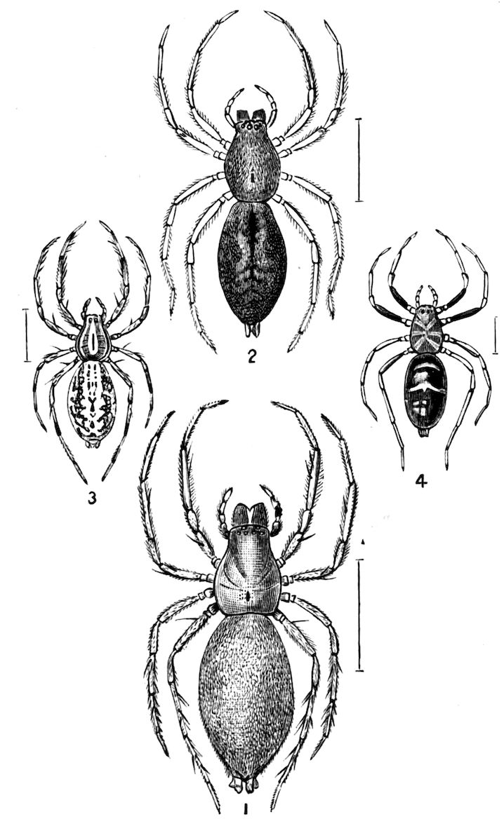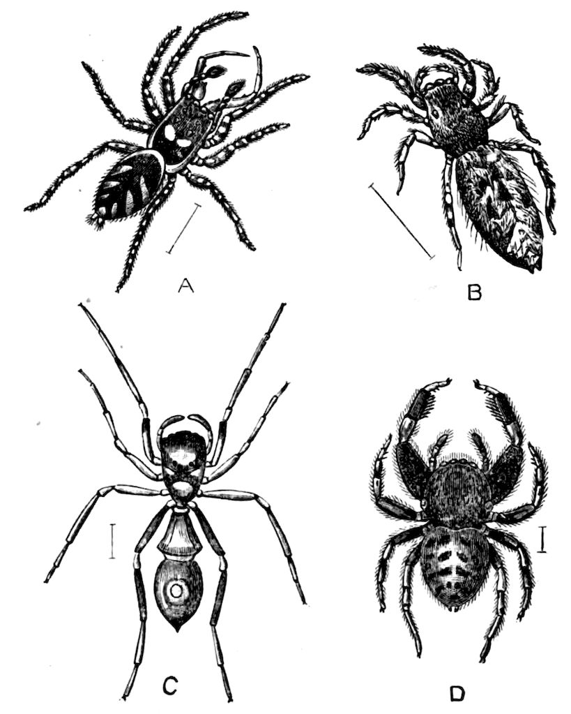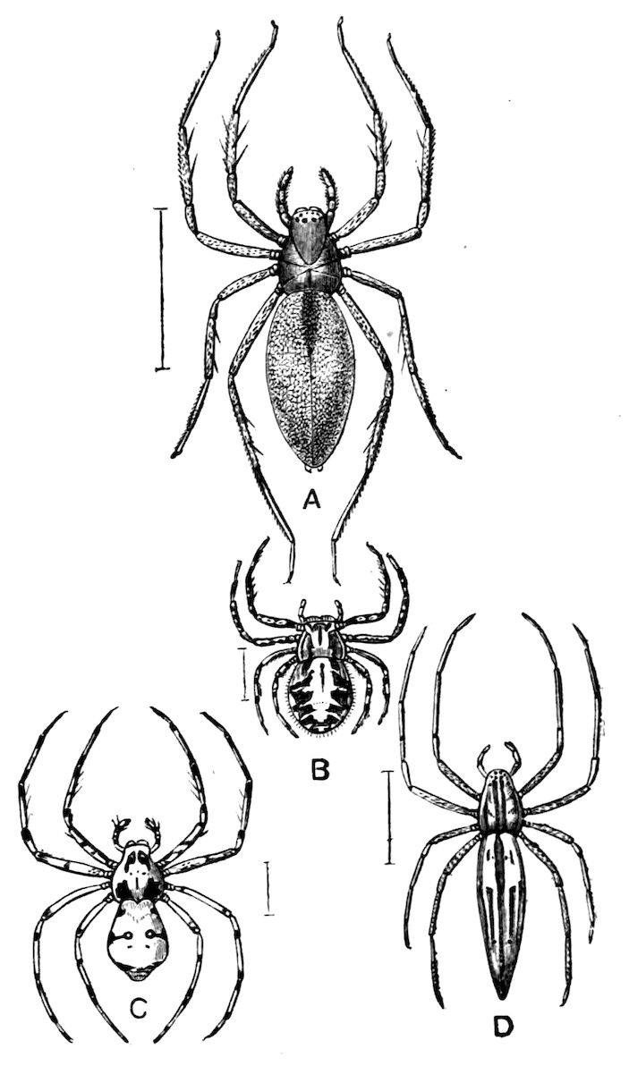 | Araneae (CONTINUED)—Habits—Ecdysis—Treatment of Young—Migration—Webs—Nests—Egg-cocoons—Poison—Fertility—Enemies—Protective Coloration—Mimicry—Senses—Intelligence—Mating Habits—Fossil Spiders | 338 |