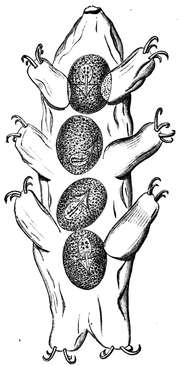 410. Semper came near to discovering the fact when he saw, at Heligoland, ripe eggs in a Phoxichilidium that was, nevertheless, totally destitute of ovigerous legs. The animal, he says, was adult and sexually mature: “Trotzdem fehlen dem Tiere die Eierträger vollständig; es muss sich also das Tier noch mindestens ein Mal häuten vor der Eierablag, und dabei müssen die Eierträger gebildet werden.” (Arb. Inst. Würzburg, 1874, p. 273).
