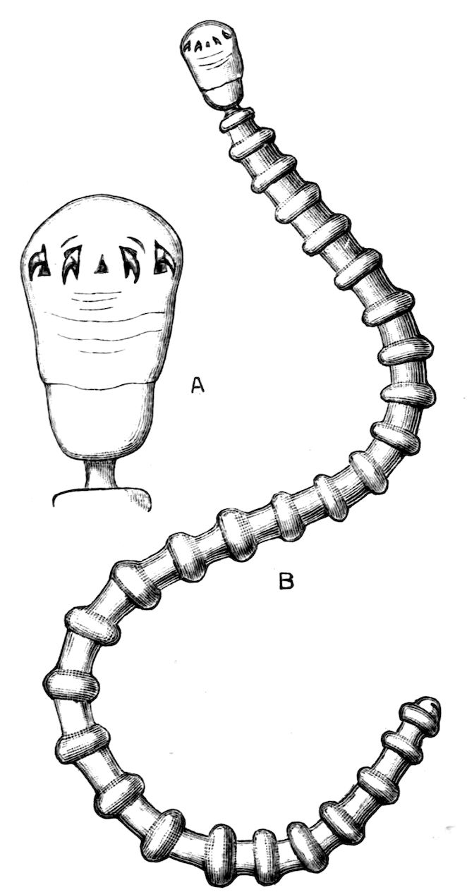 383. The animals included in this group are usually called Linguatulidae or Pentastomidae after the two genera or sub-genera Linguatula and Pentastoma. But the animal which Rudolphi in 1819 (Synopsis Entozoorum) named Pentastoma had been described, figured, and named Porocephalus by Humboldt (Recueil d’observations de zoologie et anatomie comparee, i. p. 298, pl. xxvi.) in 1811. The familiar name Pentastoma may, however, be preserved by incorporating it in the designation of the group.